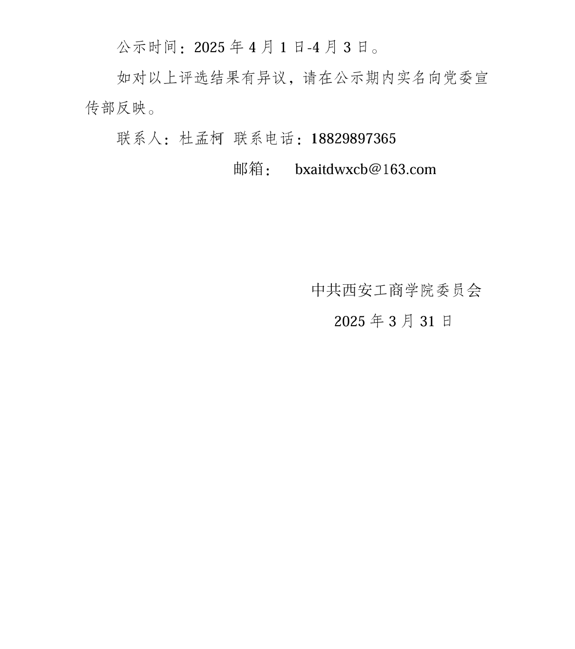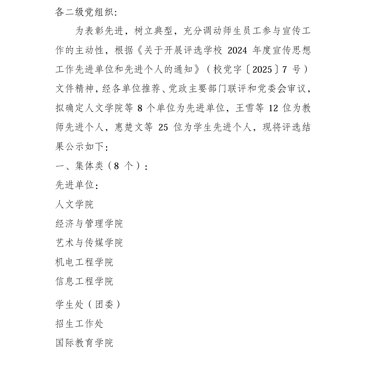 关于西安工商学院2024年度宣传思想工作先进单位和先进个人评选结果的公示