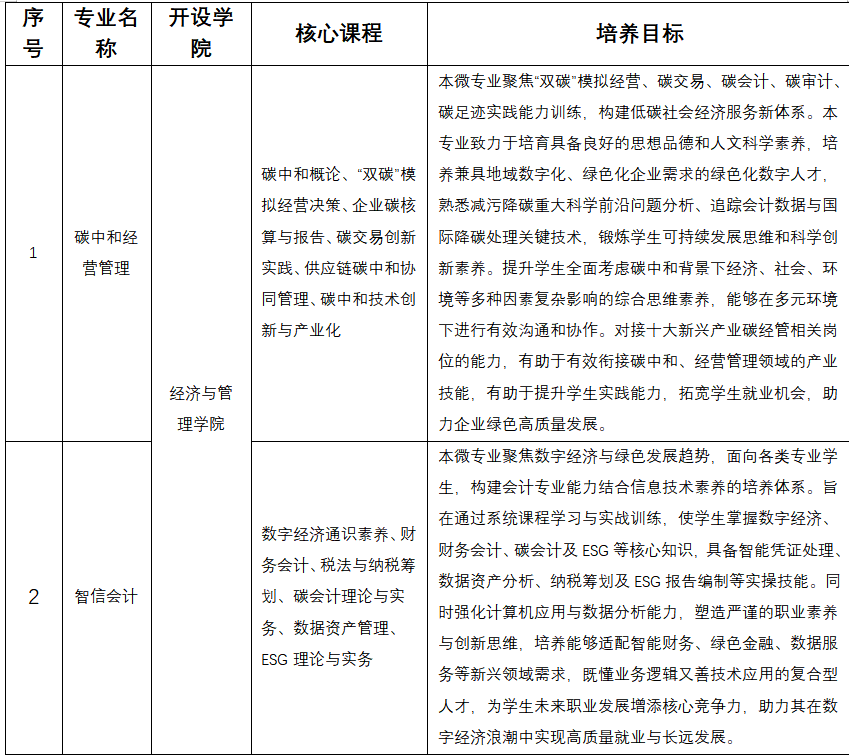 一、微专业设置