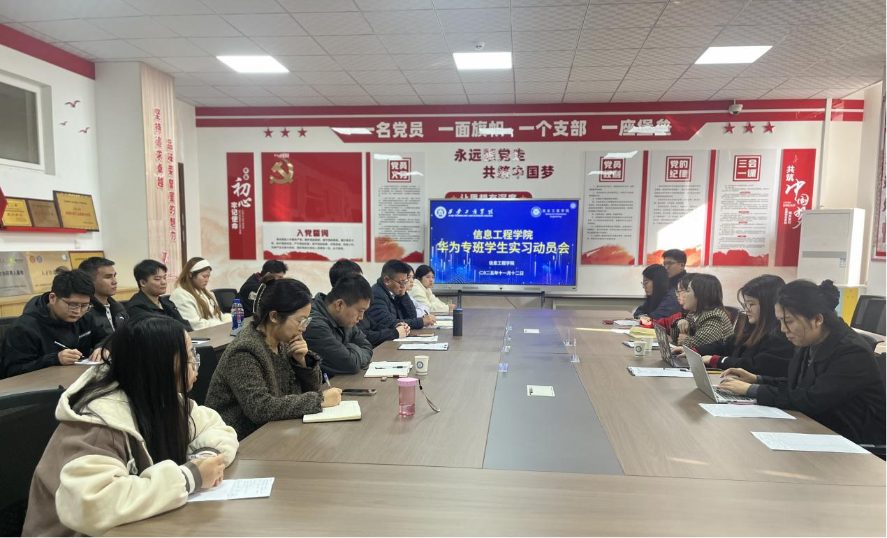 西安工商学院信息工程学院(新E代数智未来产业学院)华为专班实习动员大会在实验楼301顺利召开,为17名即将赴华为正式实习