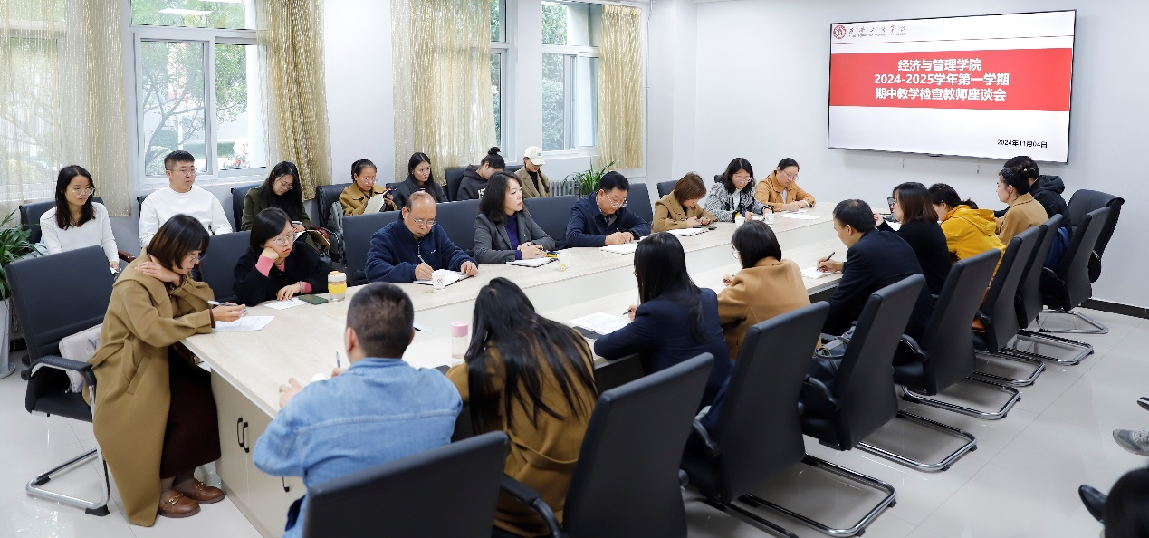 为了加强教师专业能力提升,并深入展开期中教学检查工作,2024年11月4日下午经济与管理学院在行政楼一楼会议室隆重召