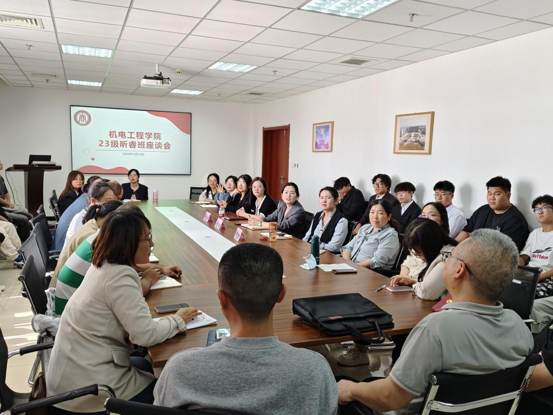 会议由机电工程学院执行院长韩娟主持、教学副院长薛凤凤、学生副院长罗院长参会,搭建学生与老师见面交流的平台,促使学生分享自