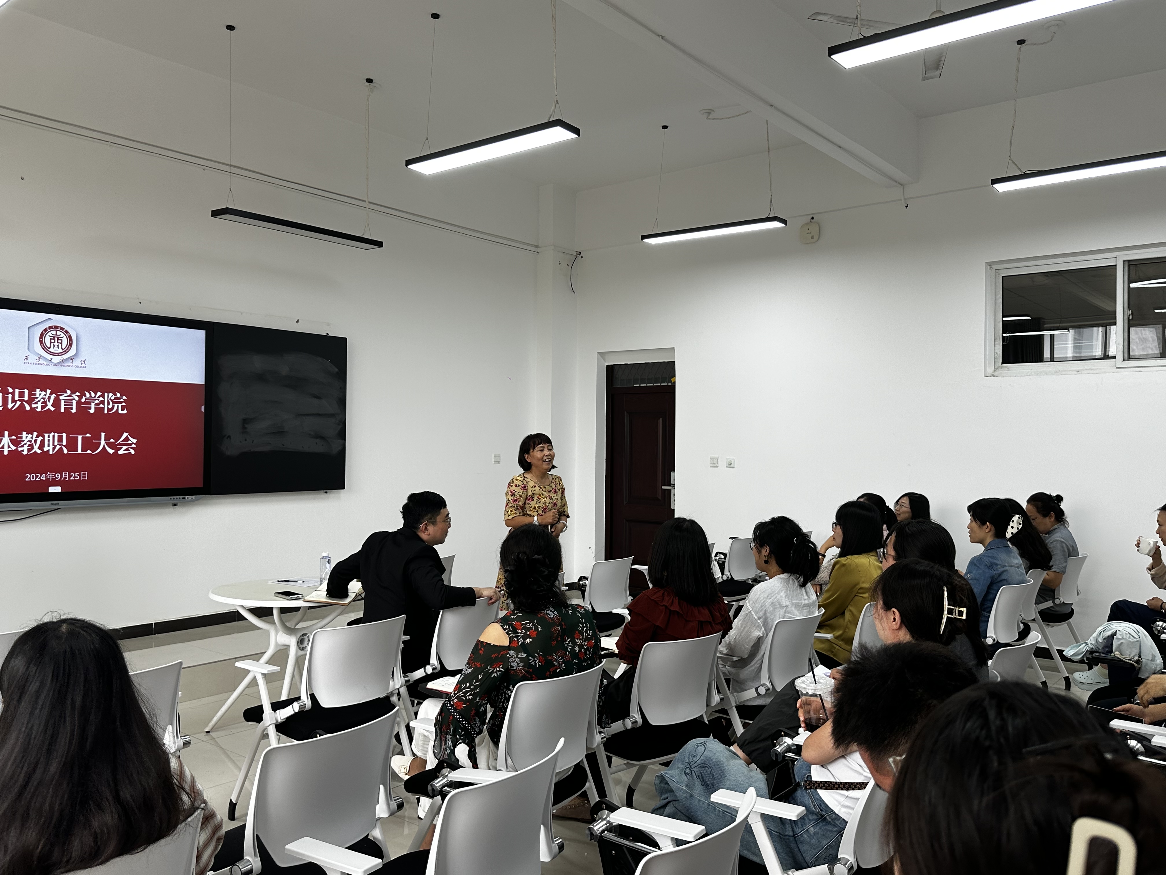 通识教育学院召开了全体教职工大会,会上学院院长张化丽和教学副院长王可对多项工作进行了部署,其中“一师一优”活动成为重点聚