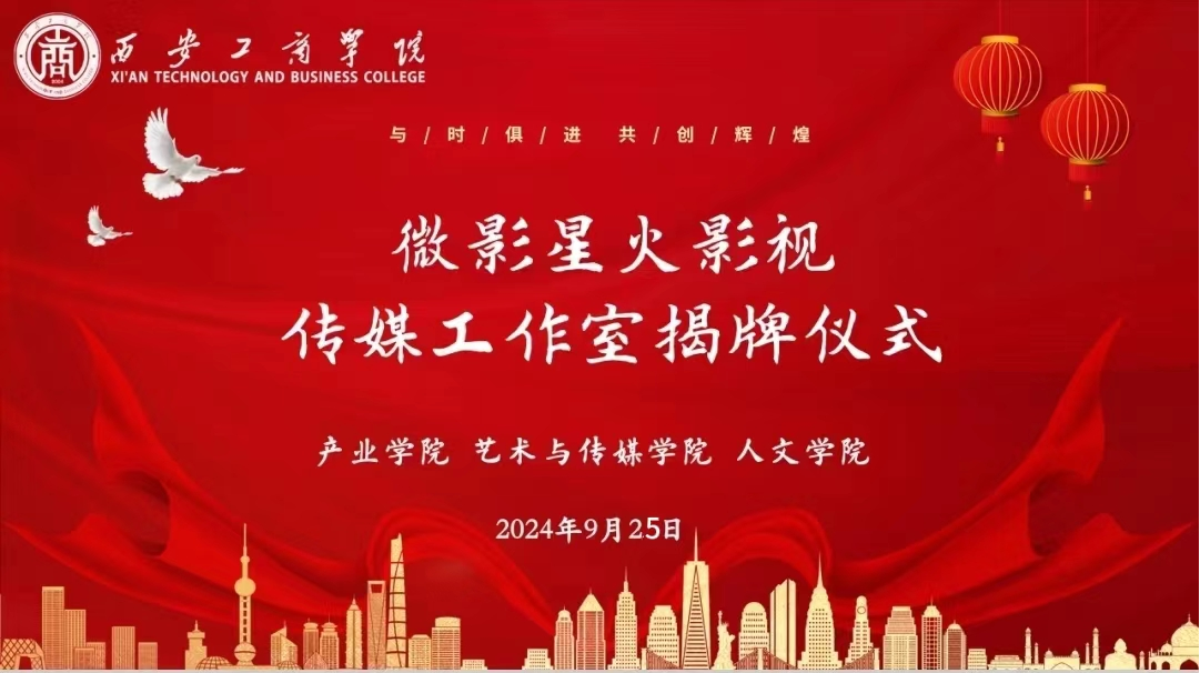 西安工商学院微影星火影视传媒工作室揭牌仪式在2103教室隆重举行,人文学院产教融合与实践教学中心主任张欢生共同参加了活动