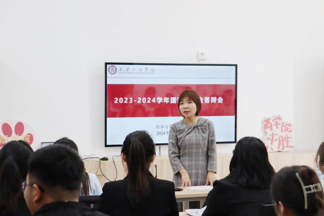 经济与管理学院在2502室举行国家奖学金答辩评议会,担任本次答辩评委的有经济与管理学院党总支书记李会萍、院团委书记、总支