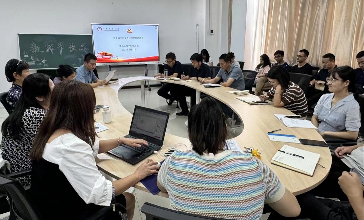 为全面深入学习贯彻党的二十届三中全会精神,信息工程学院党总支在实验楼301开展“学习贯彻党的二十届三中全