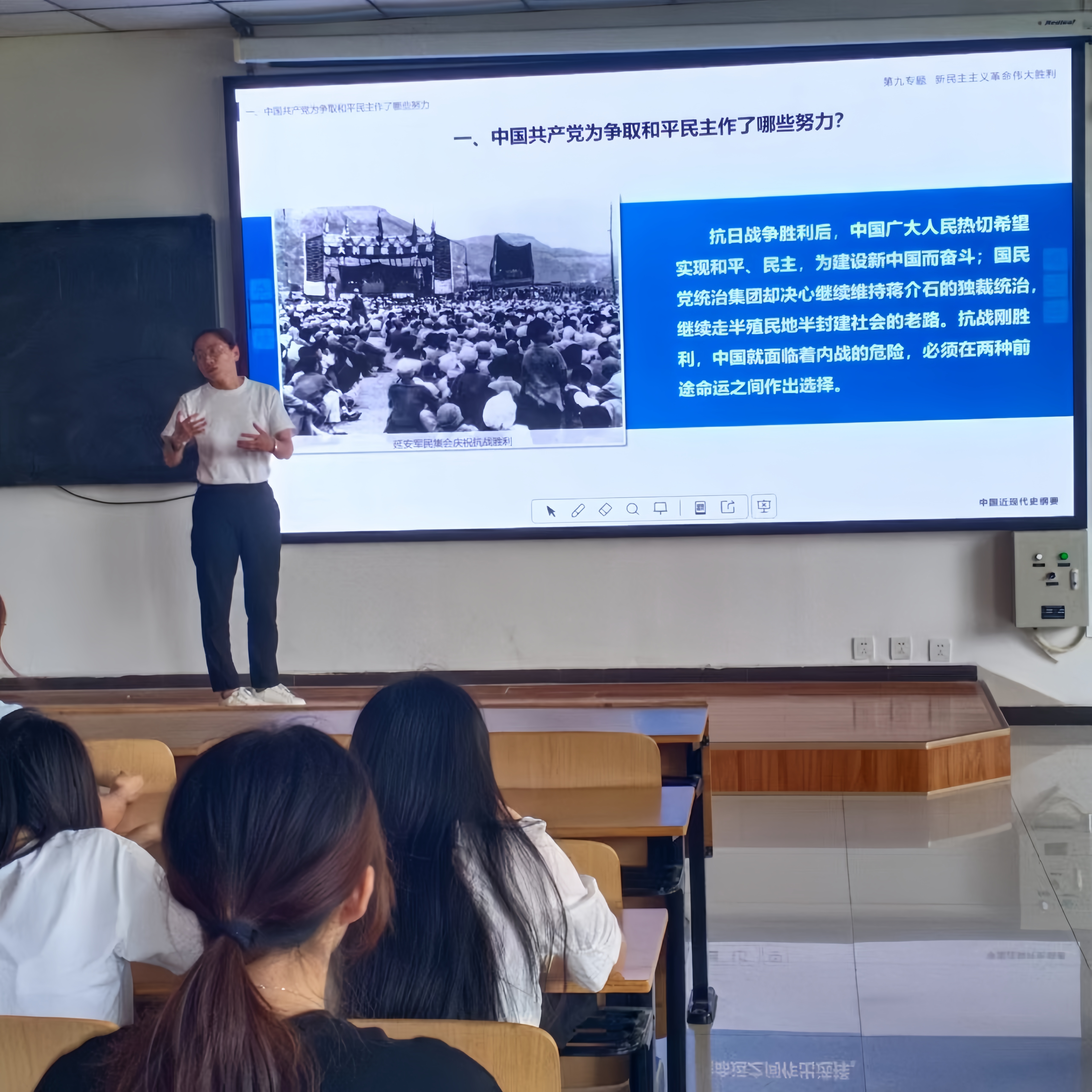 西安工商学院副校长杨欣欣在1210教室听取了李景阳老师讲授的《中国近现代史纲要》课程,李景阳老师以饱满的精神状态为学生们