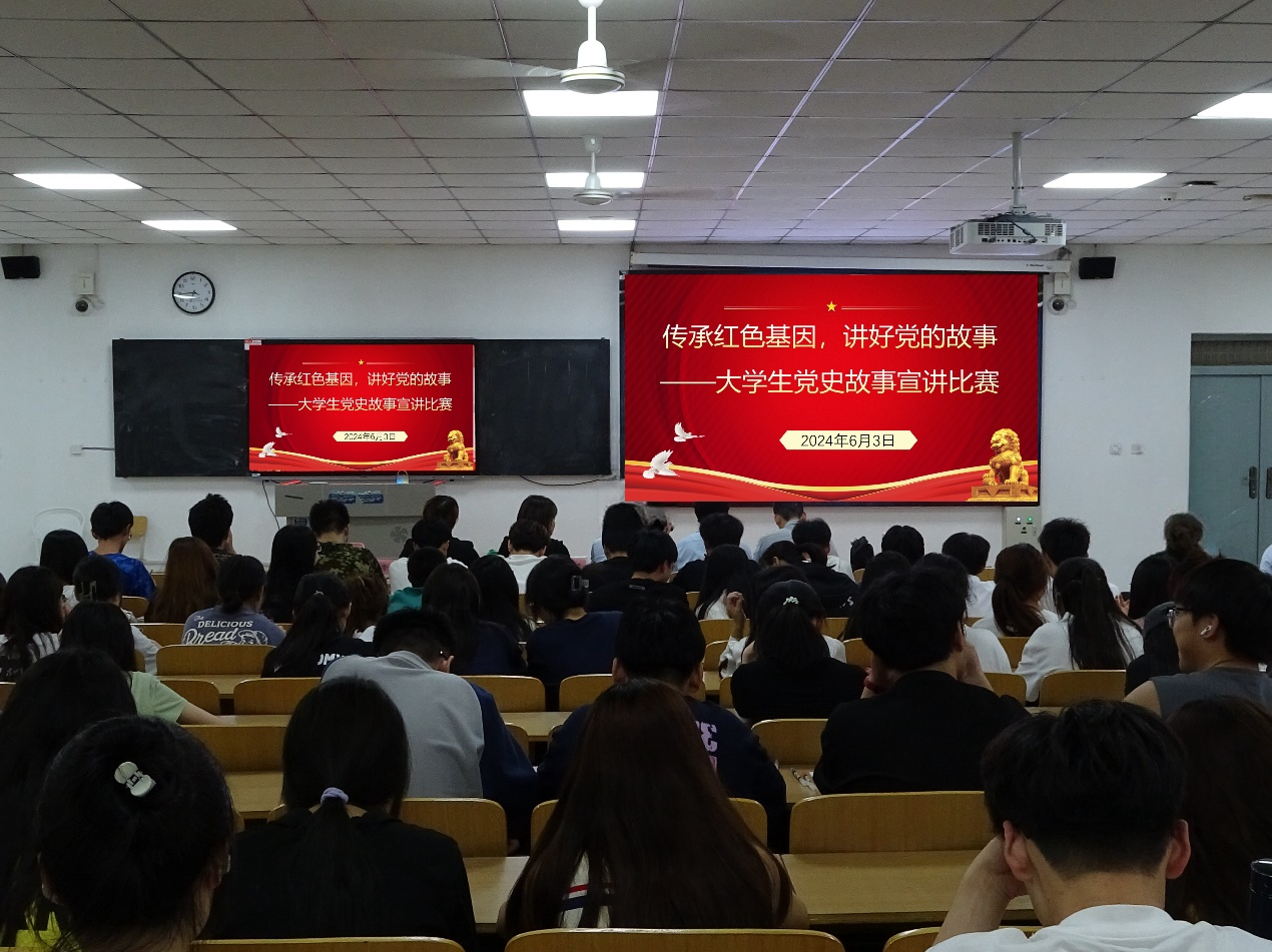 马克思主义学院在教学楼1210教室成功举办了“传承红色基因,讲好党的故事——大学生党史故事宣讲比赛”决赛,共有12支团队