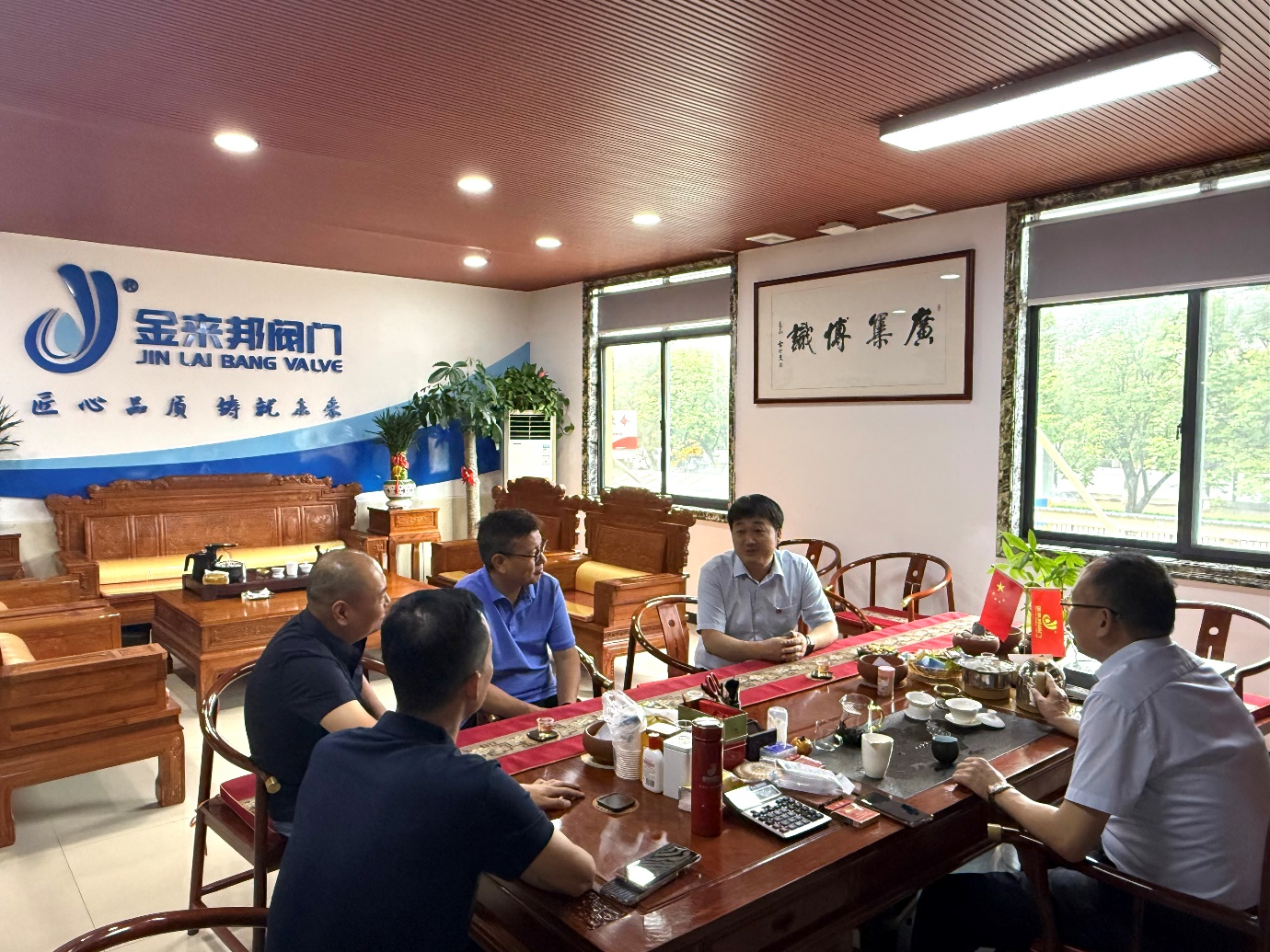 西安工商学院信息工程学院执行院长张琳、教学副院长王飞、专职教师叶昱冬一行,就西安市政策业务调研课题,前往金来邦阀门公司展