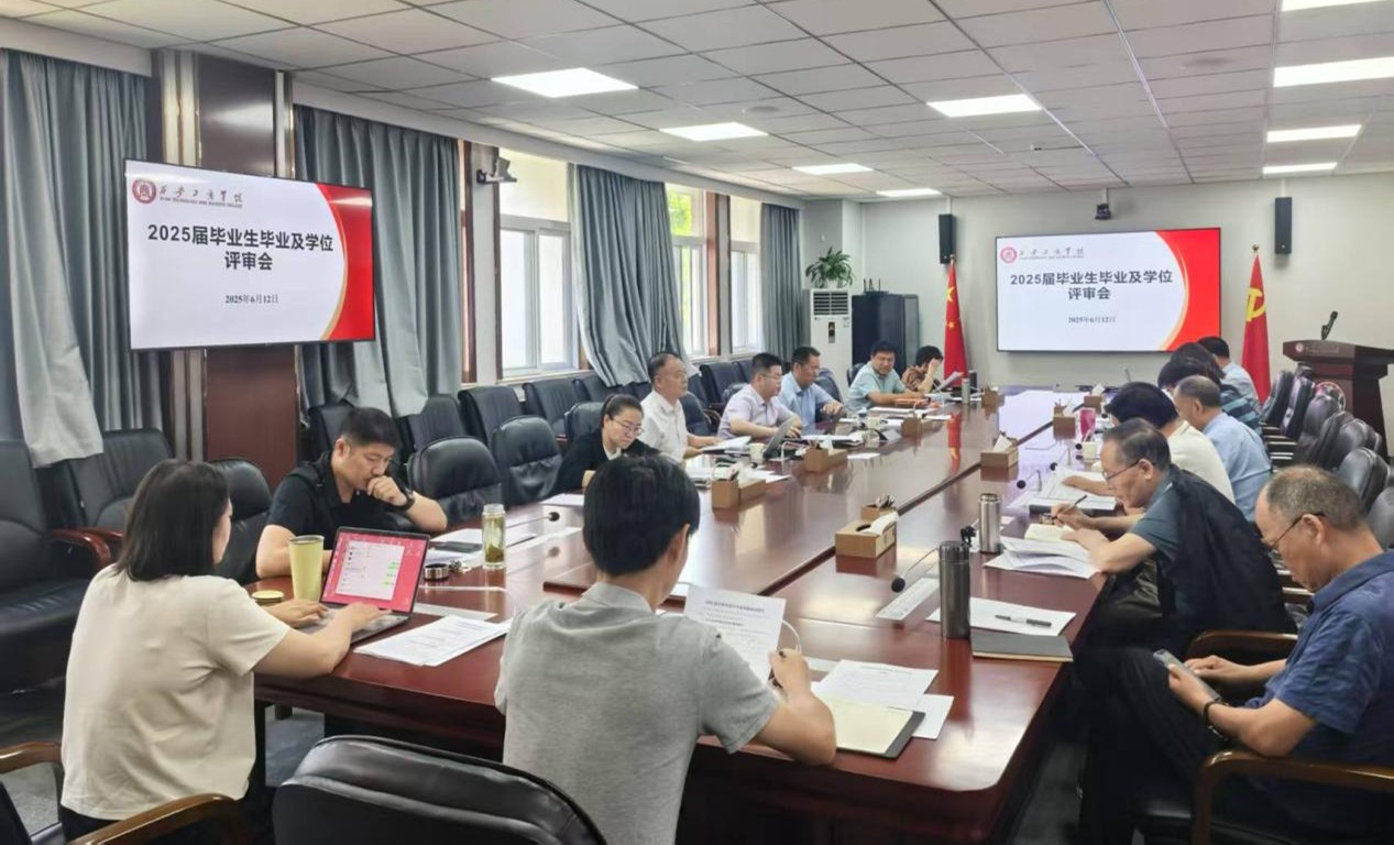 西安工商学院在第一会议室召开2025届毕业生毕业及学位评审会议, 会议初始廖校长表示毕业及学位授予工作不仅关系学生切身