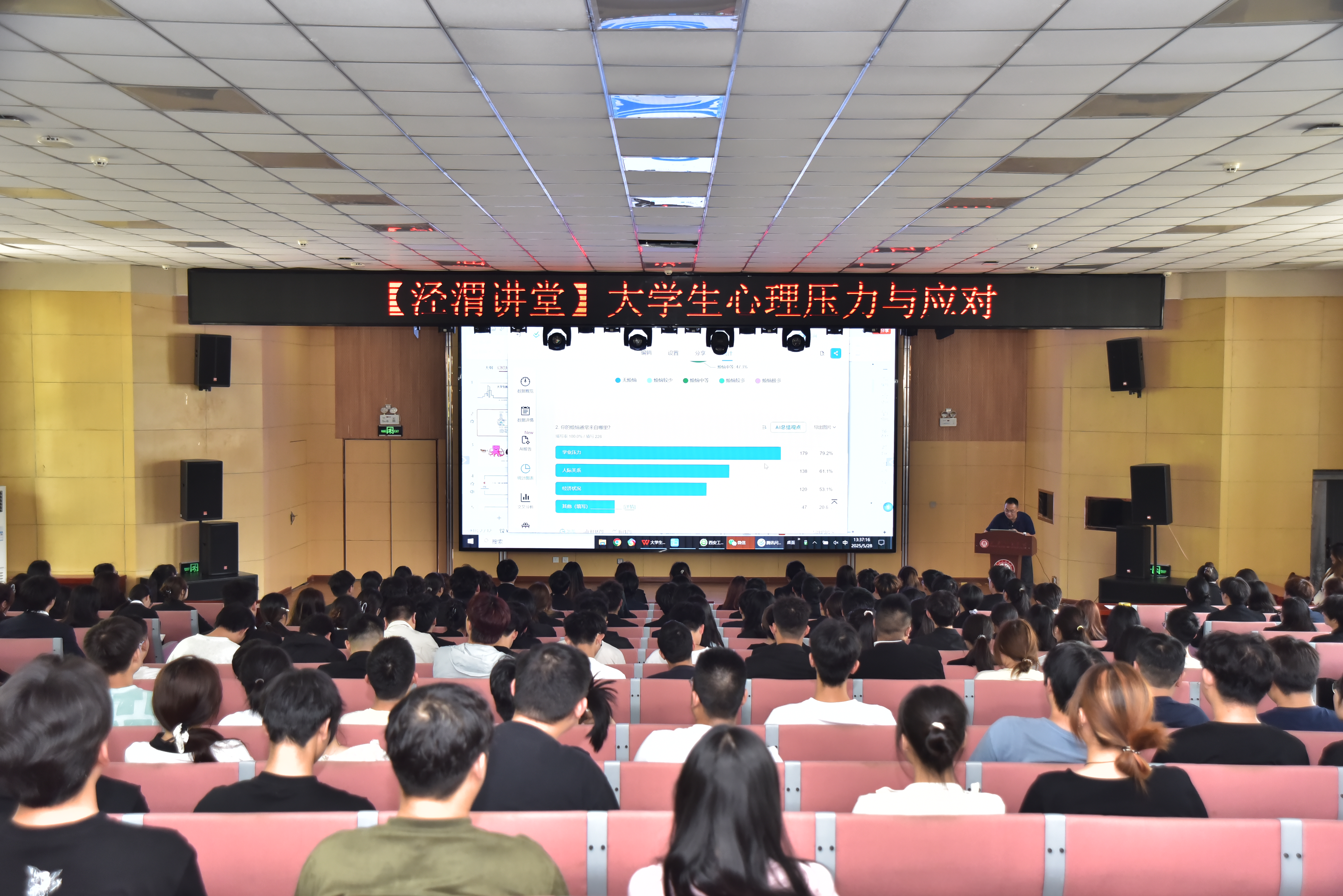 为帮助我校学生掌握科学的解压方法,在学术报告厅为我校全体心理委员和学生代表带来《大学生心理压力与应对》主题讲座,曹医