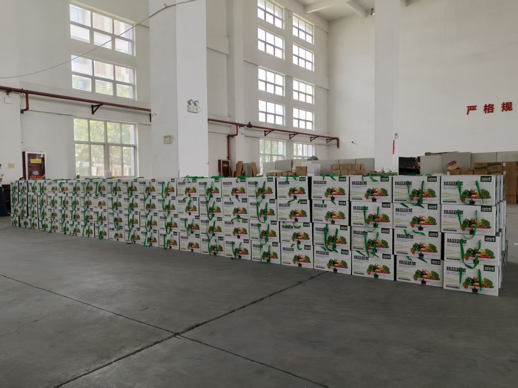 为全体教职工发放端午节福利,送上节日祝福,让教职工在忙碌的工作之余,各式各样的水果和蔬菜整齐摆放,每一份节礼都承载着学校