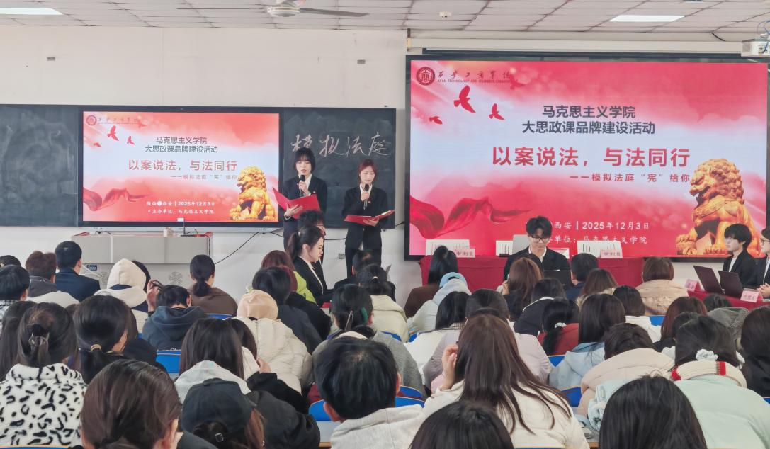 为深入学习宣传贯彻习近平法治思想,西安工商学院马克思主义学院在2413教室成功举办第二届模拟法庭决赛活动,人事处处长