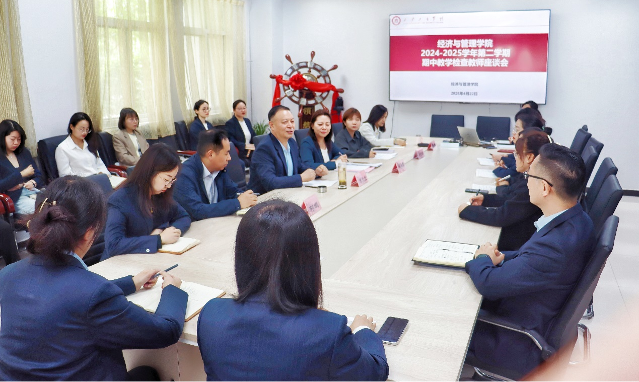 为深入落实学校期中教学检查工作要求,经济与管理学院在行政楼一楼会议室召开了期中教学检查教师座谈会, 各系教师代表就