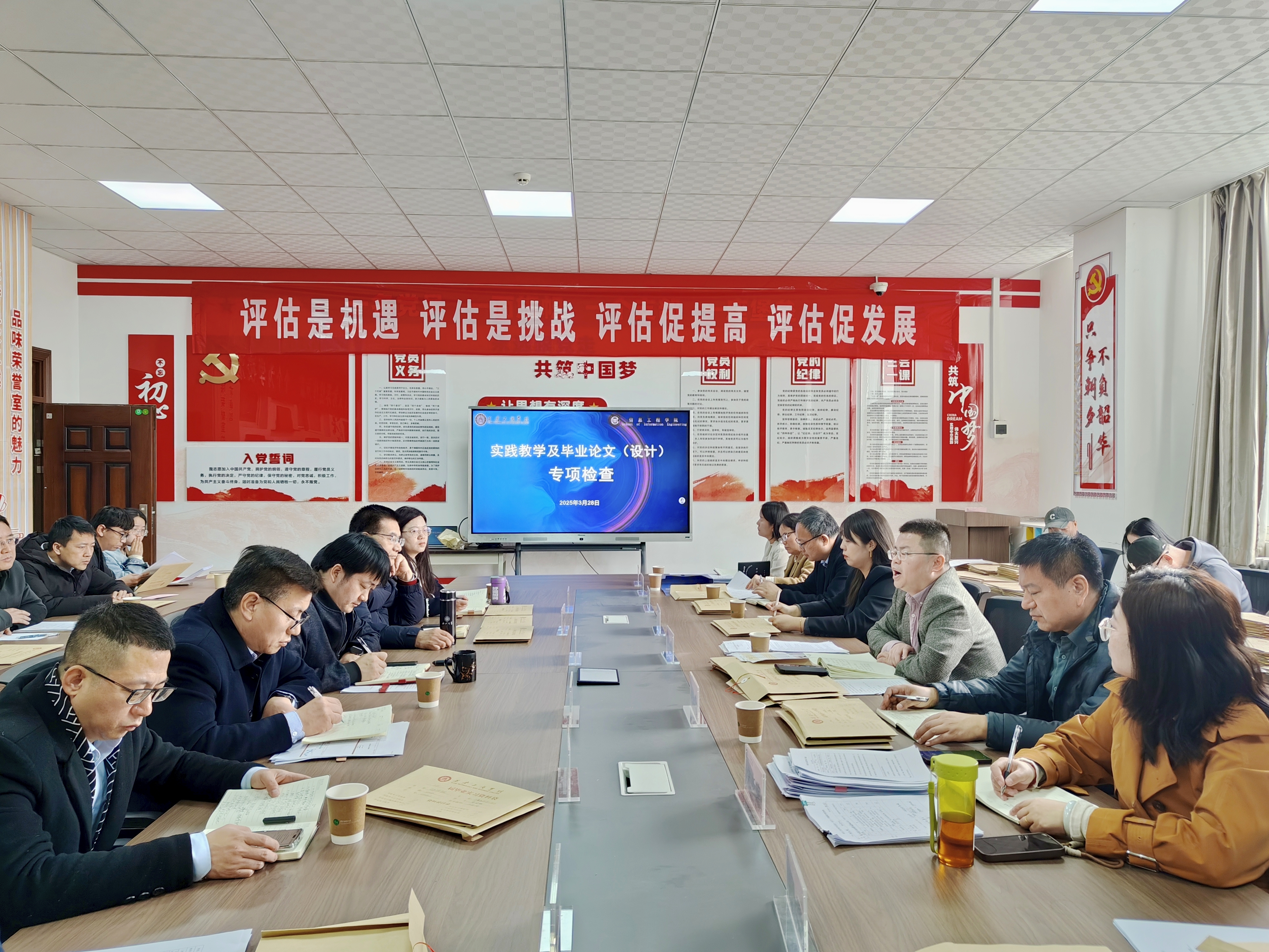 评估与建设办公室联合教务处在实验楼301会议室对信息工程学院实践教学及毕业论文(设计)进行了专项检查,检查小组对信息工程