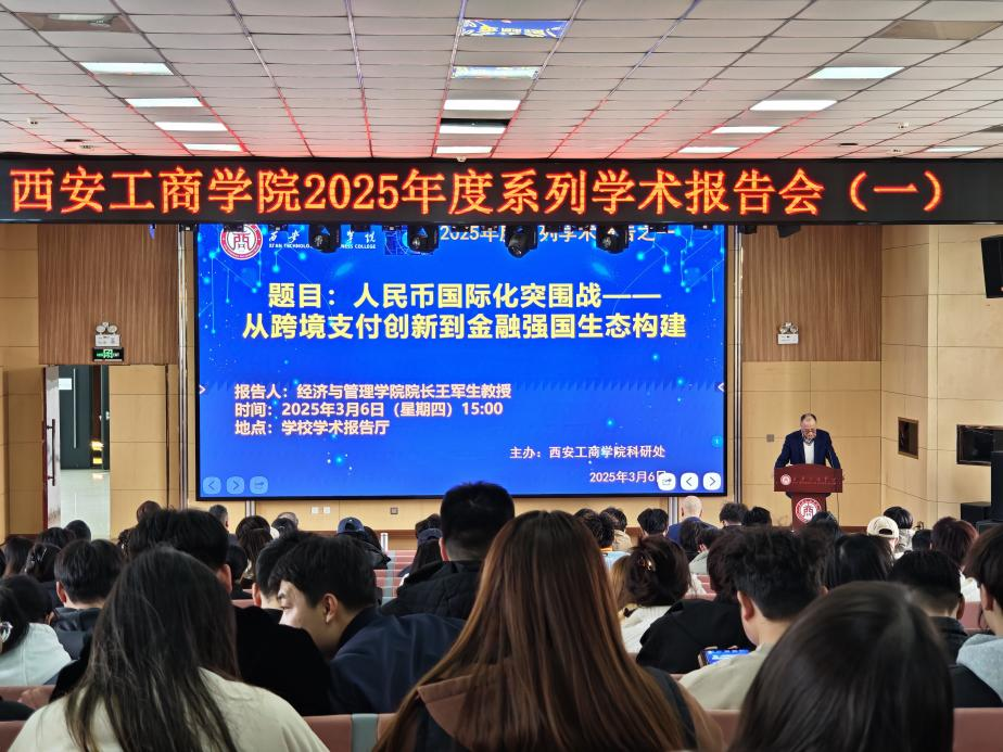 西安工商学院学术报告厅内气氛热烈,一场聚焦金融领域前沿议题的学术报告在此成功举行,经济与管理学院院长王军生教授担任主讲嘉