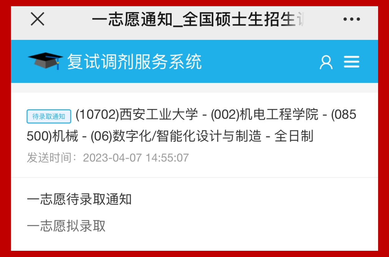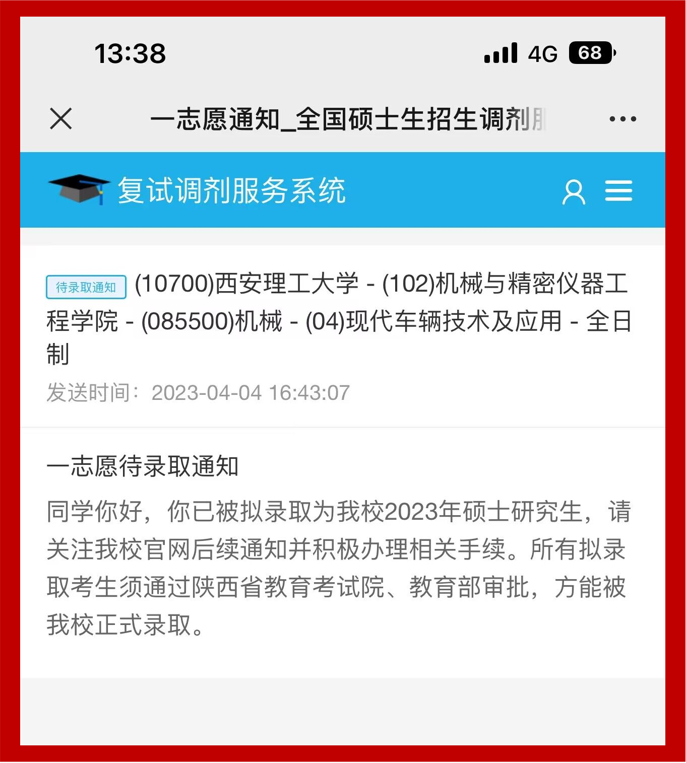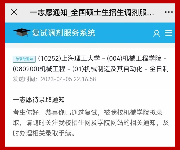 随着《2023年全国硕士研究生招生考试考生进入复试的初试成绩基本要求》的公布,机械设计制造及其自动化专业学子中已有4位同学收到录取通知。