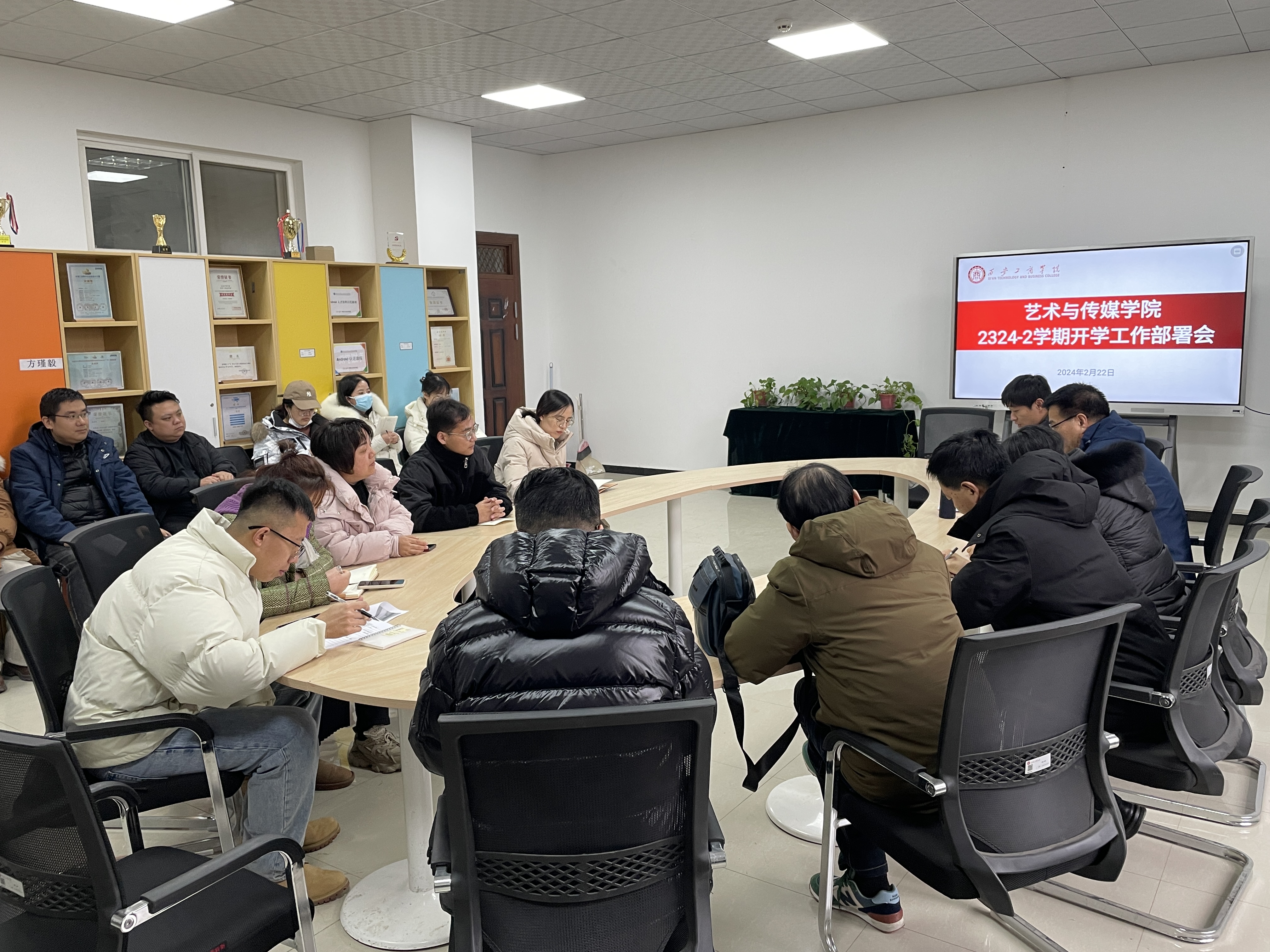 2月22日下午,艺术与传媒学院在实验楼301会议室组织召开了新学期开学工作部署会,艺术与传媒学院院长陈敏直,执行院长唐红春,党总支书记、学生副院长宋亚萍以及全体教师参加了会议。会议由陈敏直院长主持。