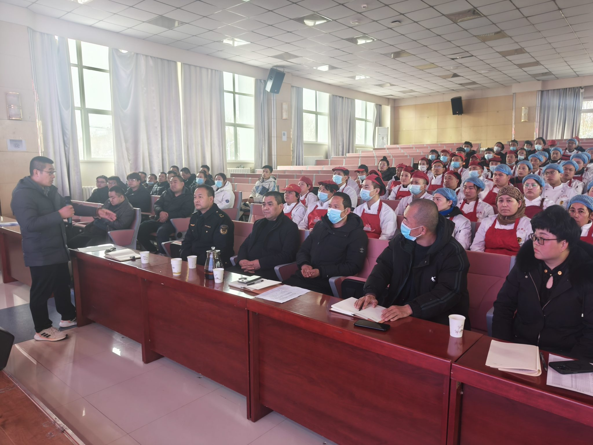 2024年2月24日下午,后勤保卫处邀请高陵区市场监管局城区监管所杨所长及食品科党科长一行两人,在我校学术报告厅对食堂、商业从业人员进行了食品安全知识及服务意识提升培训。各餐厅经理、食堂从业人员、商业店铺从业人员及后勤保卫处相关工作人员参加培训。