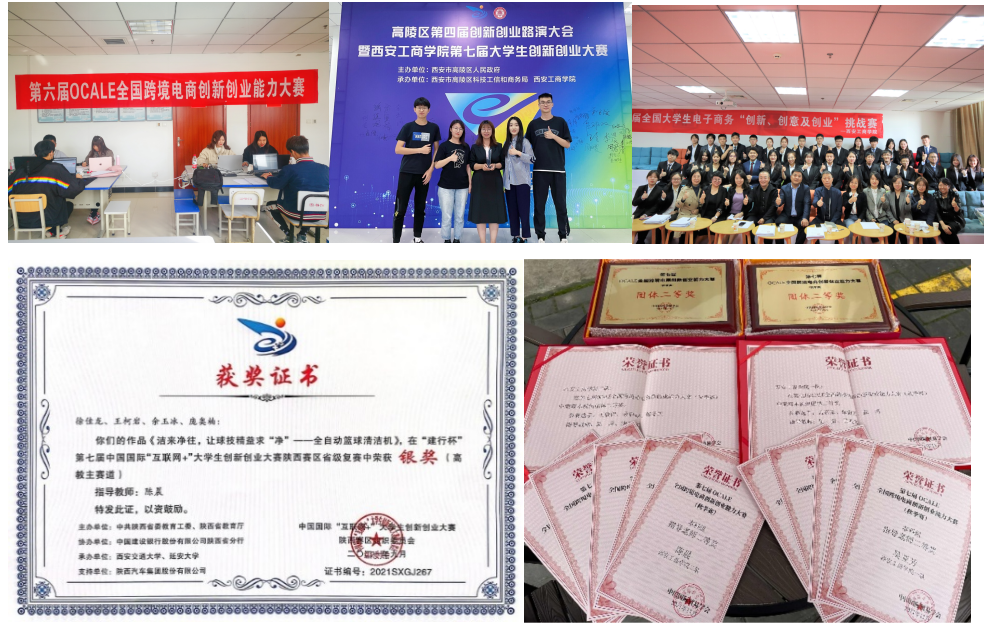 同时,丰富的学科竞赛活动,中国国际“互联网+”大学生创新创业能力大赛、全国大学生电子商务三创赛、OCALE全国跨境电子商务创新创业能力大赛、全国新零售买手创业实践大赛等等,以赛促教、以赛促学,引导和培养创新精神和实践能力,促进培养质量全面提升。