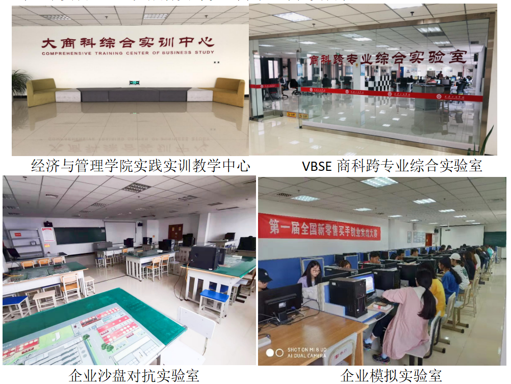经济与管理学院跨境电子商务专业拥有VBSE商科跨专业综合实验室、智能财务共享实践教学中心、企业沙盘对抗实验室、商务谈判实验室、企业模拟实验室等7个实训室,可完成各类跨境电商专业课程实训项目。