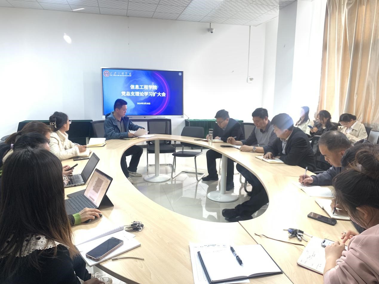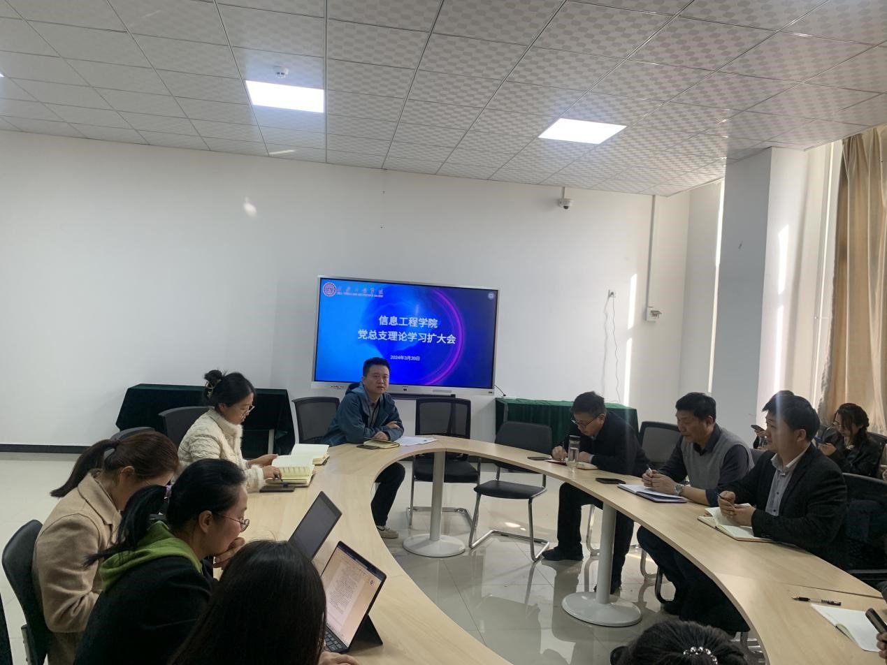 2024年3月20日,信息工程学院在实验楼301会议室召开2024年党总支理论学习组学习(扩大)会议,党总支书记李恒主持会议,学院全体教职工参加会议。