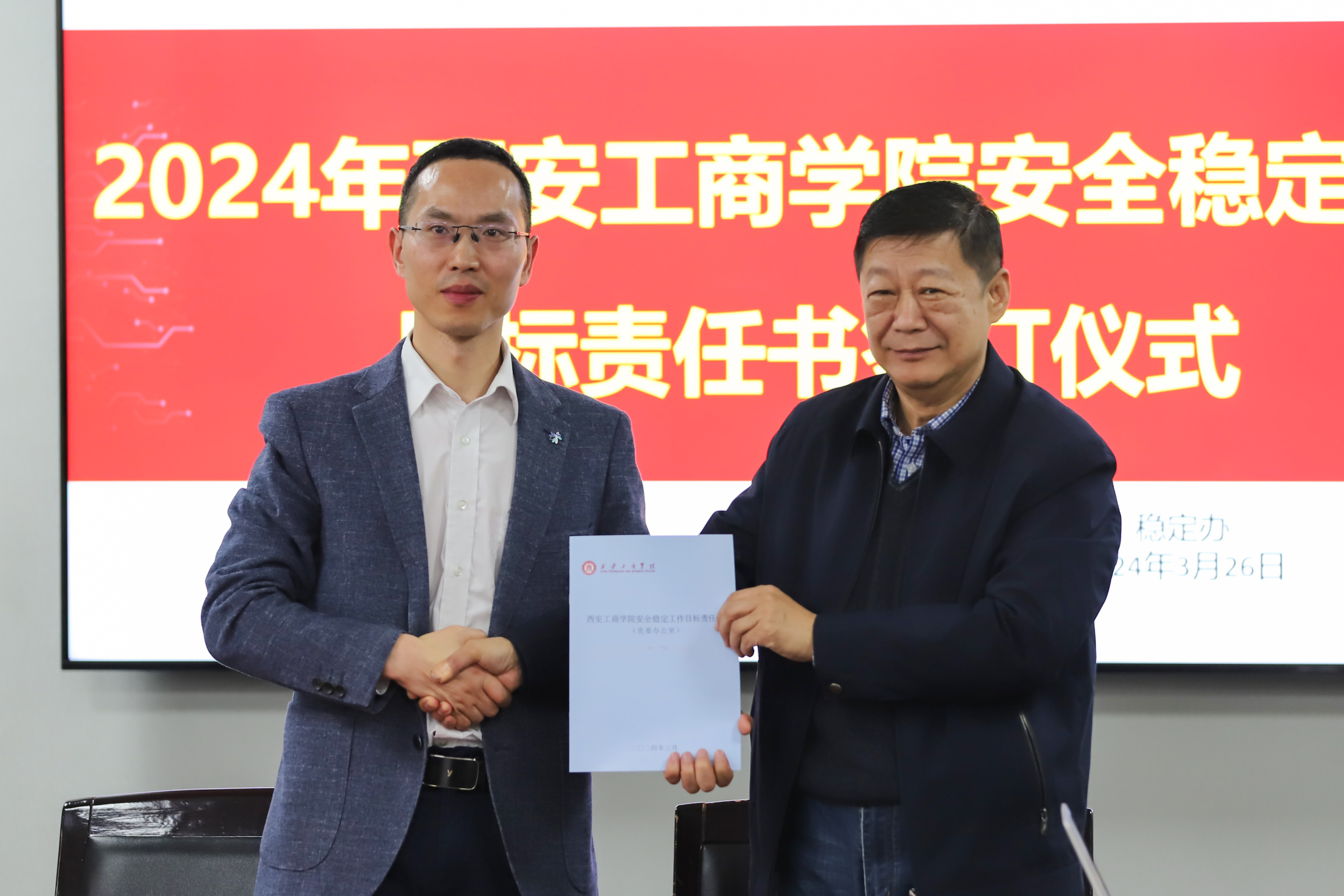 会上,校长杜元虎同志和各单位负责人签订了《2024年安全稳定工作目标责任书》。他明确要求各部门、各二级学院按照“谁主管、谁负责”的原则,落实安全稳定工作责任制,切实做好安全稳定工作。他强调:一是提高政治站位,压实安全责任;二是全方位守住安全底线;三是广泛的开展校园警示教育活动。要切实履行好各自所在岗位相应的安全管理工作职责,把安全稳定工作重担扛在肩上、记在心上、抓在手上、落到实处上,防止各类安全事故的发生,保障师生员工生命和财产安全,努力营造安全、稳定、和谐、美丽、文明的校园。