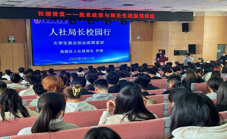 活动设置了《“人社局长进校园”—大学生就业创业政策宣讲》与《新发展阶段大学生就业形势与理性应对》主题讲座两部分。
