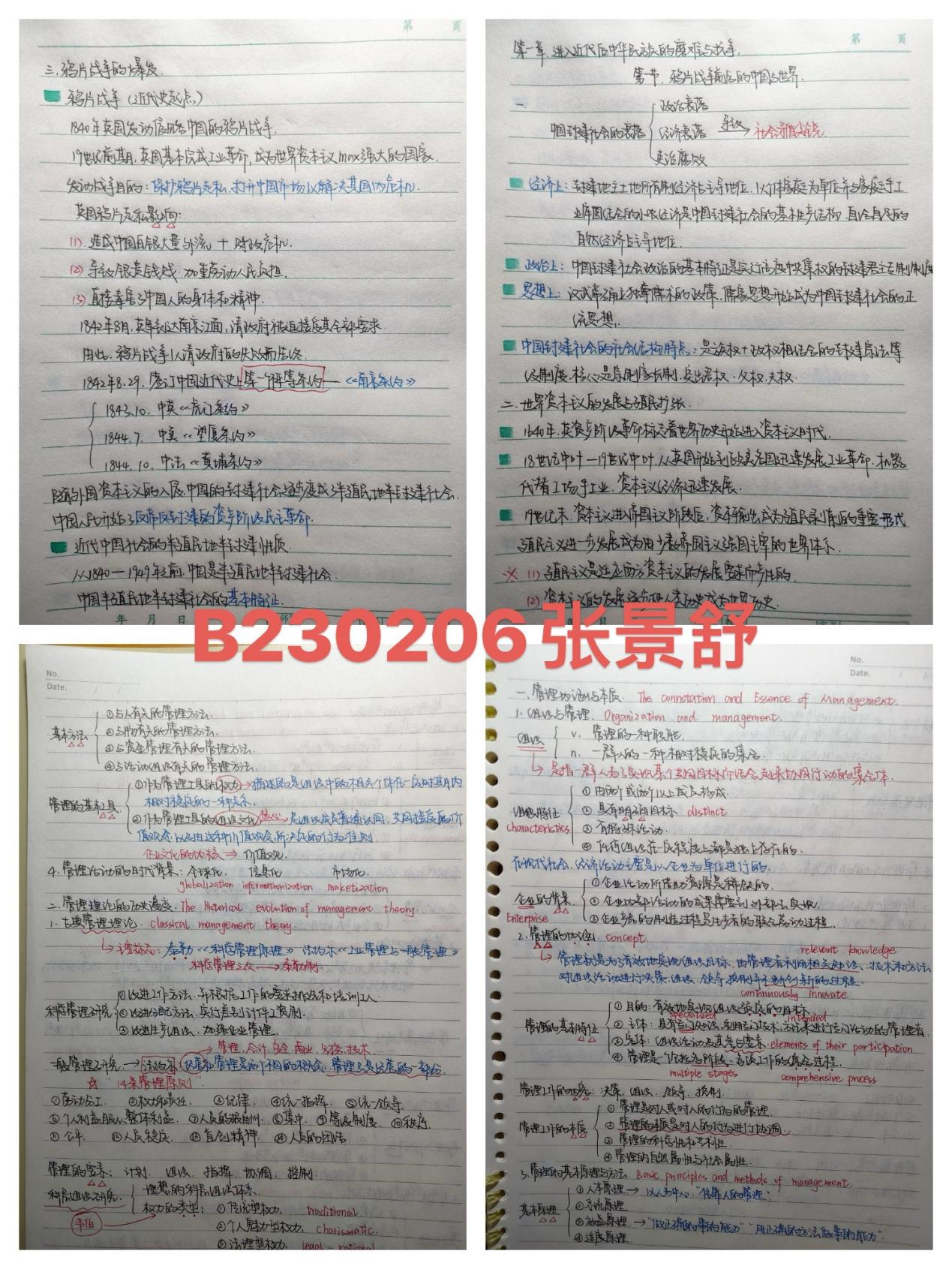 以下为经济与管理学院部分学生优秀笔记展示: