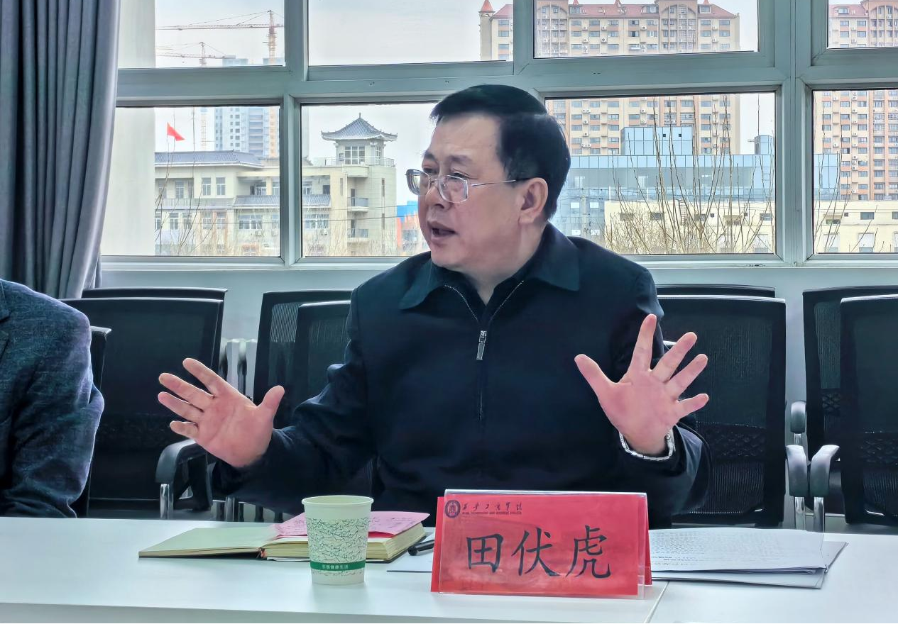 为全面了解人文学院2024年度教育教学、科研、师资队伍、党的建设等方面基本情况,进一步推动学校迎评促建工作,校党委书记田伏虎、党委宣传部部长李景阳于2024年3月26日深入人文学院进行走访调研,人文学院党总支书记范诚梅、副书记原朝阳及全体支部书记参会。
