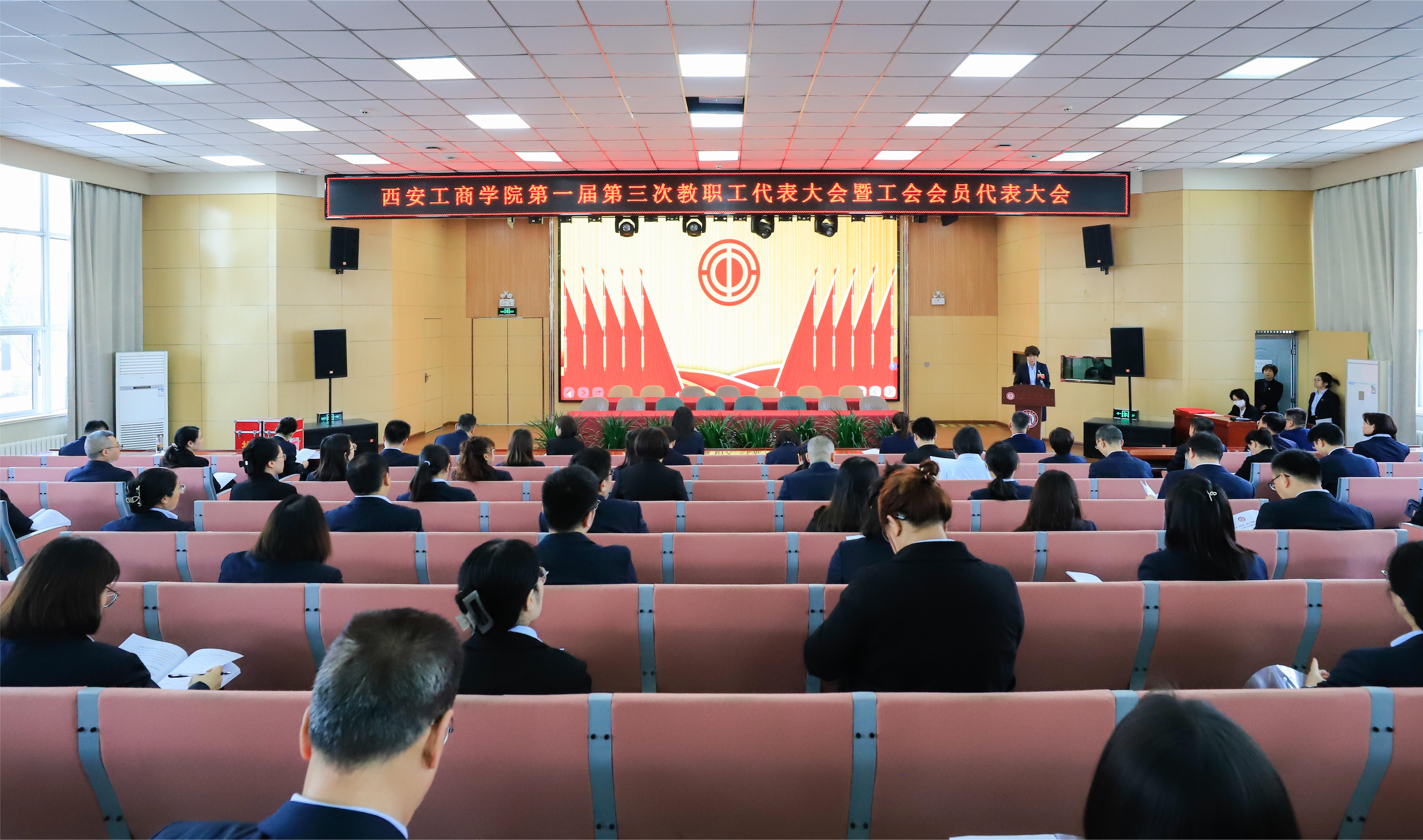 3月30日上午9时,西安工商学院第一届第三次教职工代表大会暨工会会员代表大会在学术报告厅隆重召开。开幕式由西安工商学院工会主席程波主持。83名正式代表、列席代表齐聚一堂,共谋学校发展大计。