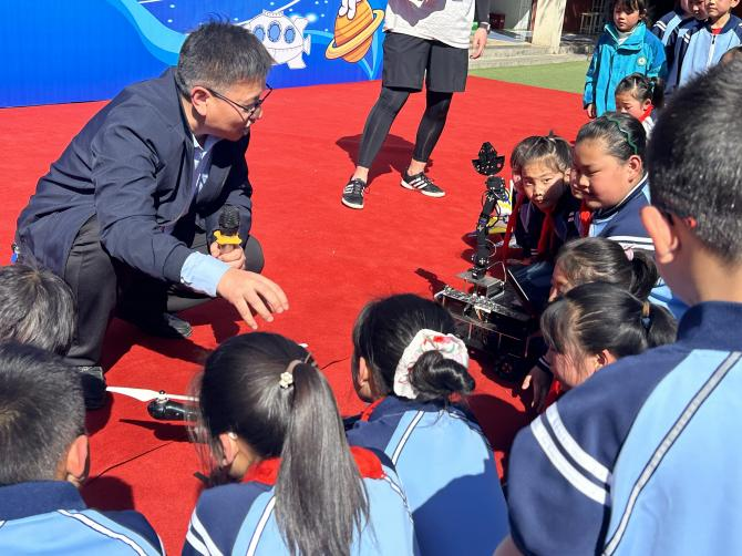 王院长在活动现场详细介绍了航模、机械臂、无人机等科技产品的原理,耐心细致地解答了孩子们提出的问题。王院长的讲解深入浅出,让孩子们在轻松愉快的氛围中感受到了科技的魅力。