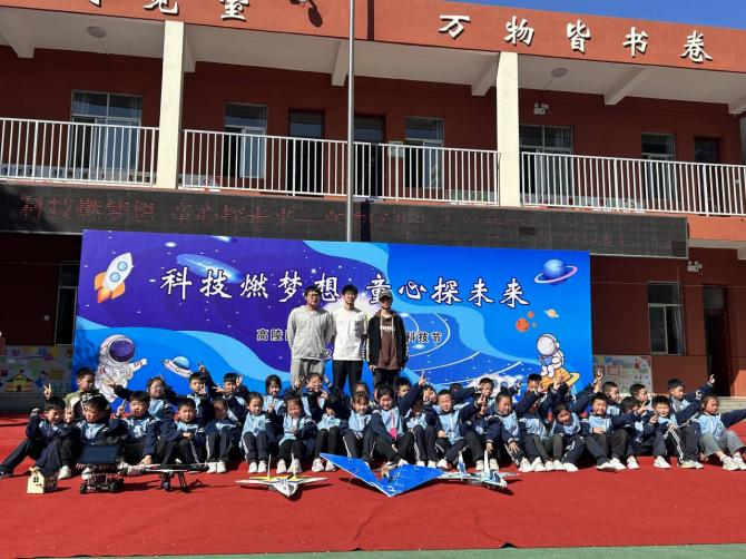 在活动的最后环节,三位来自西安工商学院的学生展示了航模飞行表演,吸引了众多小学生的目光。孩子们围绕着航模好奇地提问,黎明同学以其渊博的知识、生动的表述,向小学生详细解释了航模的制作过程和飞行原理。在他的讲解下,孩子们对航模飞行有了更加直观和深入的了解。