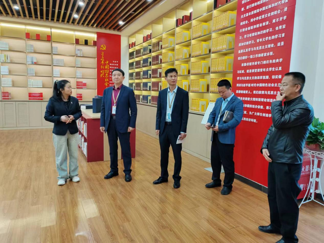 按照调研活动安排,调研组一行5人来到陕西国际商贸学院并受到了执行校长贾明远等领导的热烈欢迎。首先,参观了陕西国际商贸学院图书馆、步长中药标本馆、宝玉石陈列馆、思政文化长廊等。