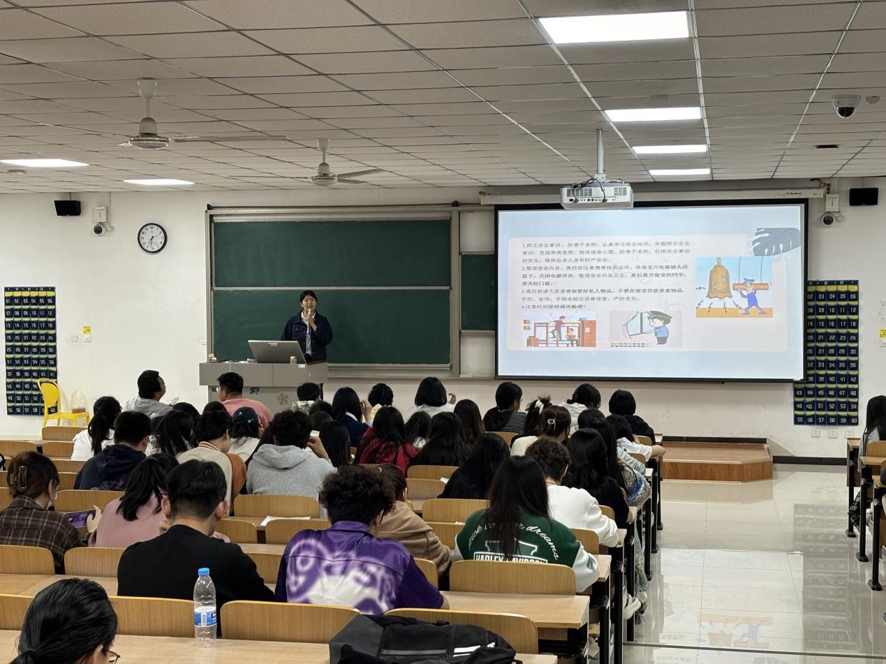 首先,辅导员倡导在清明节期间采取文明祭祀的方式,避免焚香、烧纸等活动引发的火灾和空气污染。对于离校前,强调学生需整理宿舍内务卫生,保持宿舍干净整洁,宿舍内关闭电源开关,离校前妥善保管好私人物品等。对于留校学生,提醒学生注意宿舍内用电安全,遵守学校宿舍管理规定,不在宿舍私拉乱接电线等。此外,辅导员还讲解了交通安全、食品卫生安全、网络安全等方面的知识。最后,通过一些清明小知识让学生了解清明节的传统习俗和注意事项。