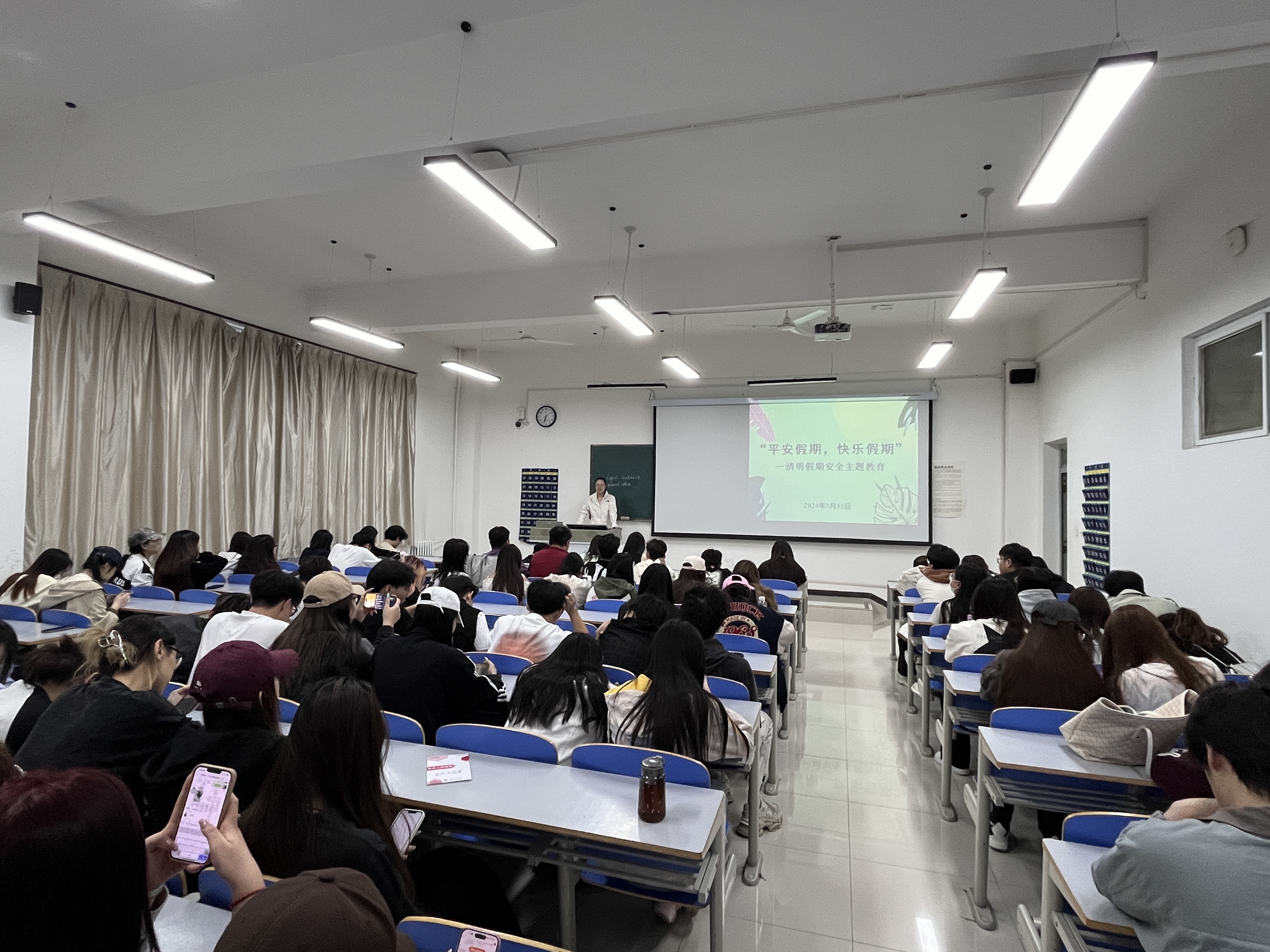 班会上,辅导员老师首先向同学们普及了关于清明节的传统文化知识,使大家对清明节有了更深刻的认识。随后,强调了放假期间的安全问题。重点从文明祭祀、交通安全、人身财产安全、防诈反诈安全、饮食安全等方面进行强化教育,并针对离校和留校的学生提出自身需要特别注意的安全事项。