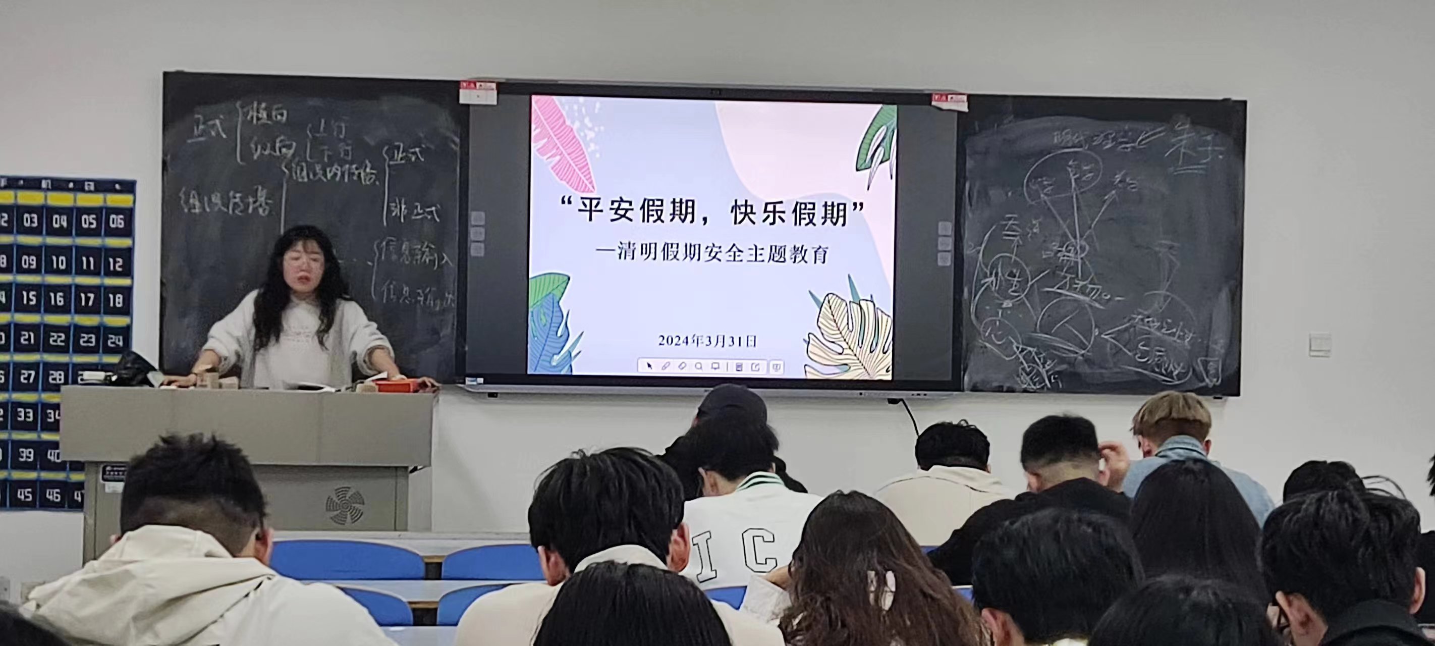 班会最后,辅导员老师再次强调安全无小事,各位同学要从思想上高度重视安全问题,提高自我保护能力,严防意外事故的发生。同时,提醒大家最近天气多变,要注意保暖,节后按时返校,度过一个平安、健康、快乐的清明假期。