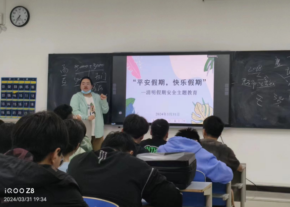 清明节,既是人们追思先人、缅怀英烈的重要时刻,也是春季户外活动、踏青赏景的佳期。随着清明节的到来,为切实做好假期期间学生的安全稳定工作,提升学生假期安全意识,确保同学们度过一个文明、有意义的清明节,机电工程学院于2024年3月31日晚在教学楼组织开展了“清明追思,安全先行”假期安全主题班会。