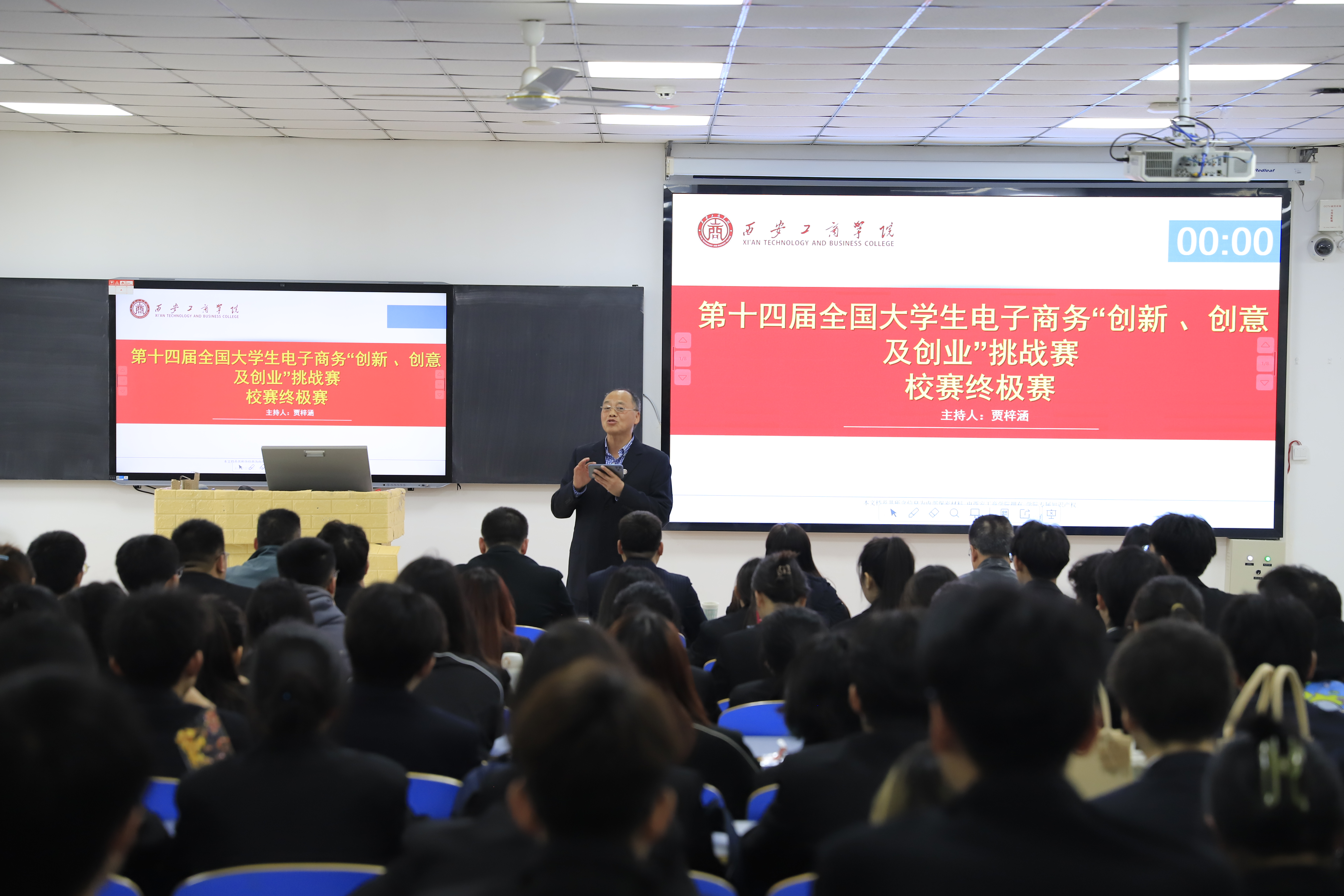 西安工商学院经济与管理学院过仕明院长致开幕词,指出学科竞赛能够体现学生团队合作的拼搏精神,有效提升学生创新、实践、协作能力,他对参赛队员们积极自信的精神面貌提出表扬;同时过院长对此次“三创赛”的前期准备工作表示肯定,鼓励参赛队员赛出自我、赛出精神,并预祝“三创赛”校赛圆满成功。