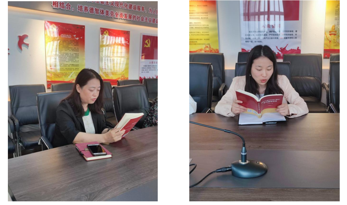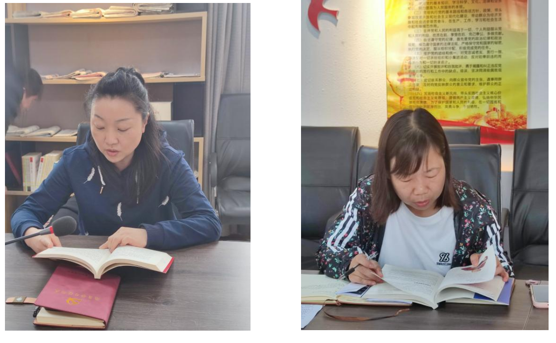 党支部书记刘娟红讲了四月为读书月,强调读书的重要性,组织党员诵读红色经典,崇敬先烈英雄,回望峥嵘岁月,坚定初心使命,担当历史责任,奋进新的征程。“希望同志们一道在红色经典中汲取前进的力量,弘扬浩然正气,让红色基因融入血脉,代代相传!”。随后,党员们纷纷真挚地朗诵了各自选读的选段,有百年党史、红色经典、抗疫事迹等作品与经典诗篇。伴随着朗诵者们的诵读声,有家国情怀、有初心使命、有青春理想,或慷慨激昂,或低沉婉转,或声情并茂,唱响了新时代爱党爱国的“主旋律”。