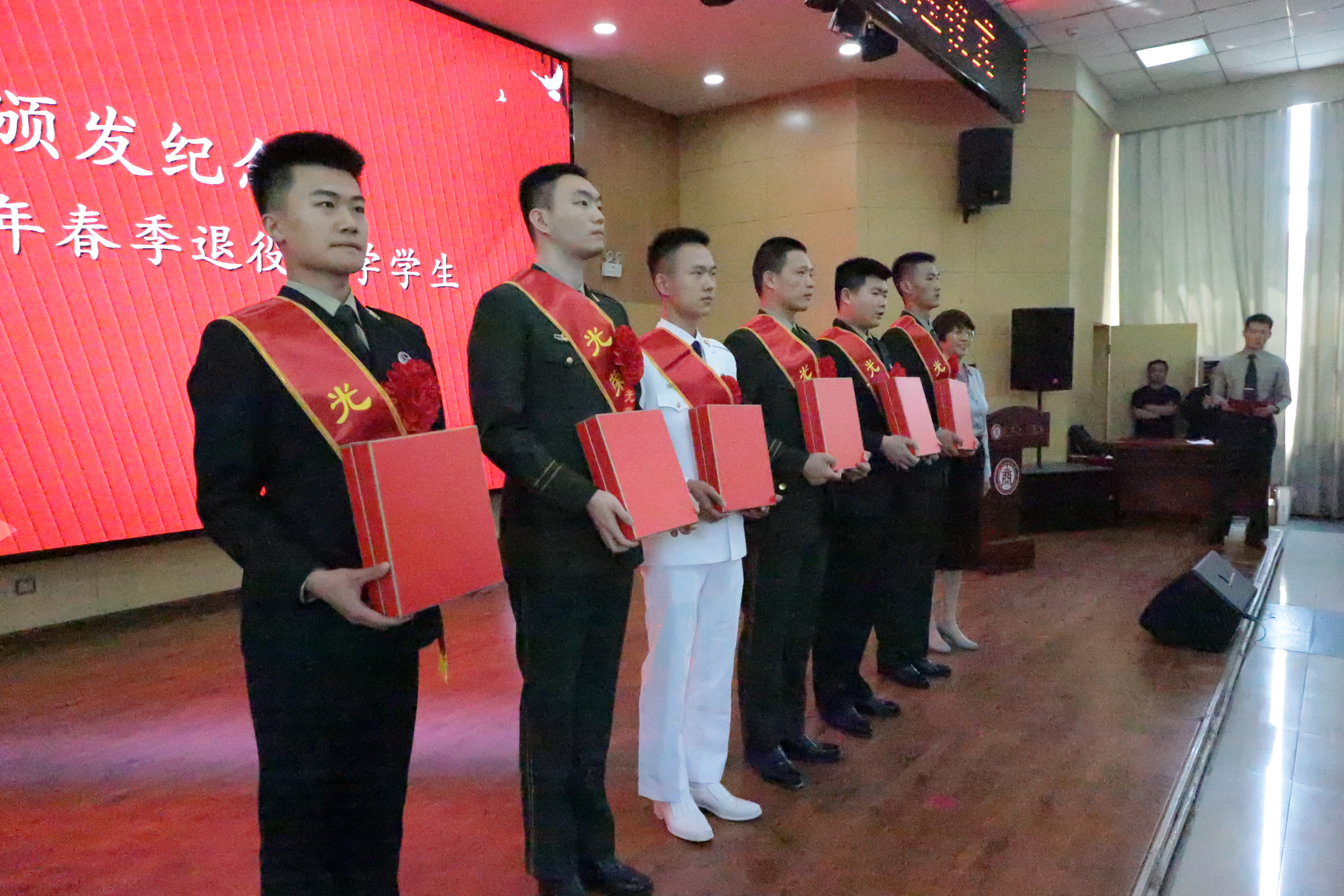 仪式最后,副校长程波对光荣退役复学大学生表示热烈欢迎,对长期支持学校国防教育工作的各位领导、老师表示了衷心的感谢,并对全体退役复学学生提出以下三点希望:一是珍惜军人荣誉,永葆军人本色。希望退役学生始终珍惜军人荣誉,坚持初心不改,保持和发扬人民军队的光荣传统,做到退伍不褪色,退役不退志,努力在新征程上再立新功。二是坚定理想信念,弘扬军人作风。希望退役学生回到学校,尽快完成角色转换,在学习中也能打胜仗;把互帮互助的集体主义精神带入大学生活,把部队吃苦耐劳、能打敢拼的优良作风带到课程学习中,以军人优良的作风带动和促进班风、学风、校风建设。三是立高标准,做好表率。希望退役学生严格要求自己,继续发扬军营正能量,继续争做示范、当表率、立榜样,在政治上求进步,工作上当骨干,作风上当标本,学习上当尖兵,素质上当楷模;既怀揣梦想又脚踏实地,既敢想敢为又善作善成,不断加强专业学习和社会实践,努力成为一名优秀学生。