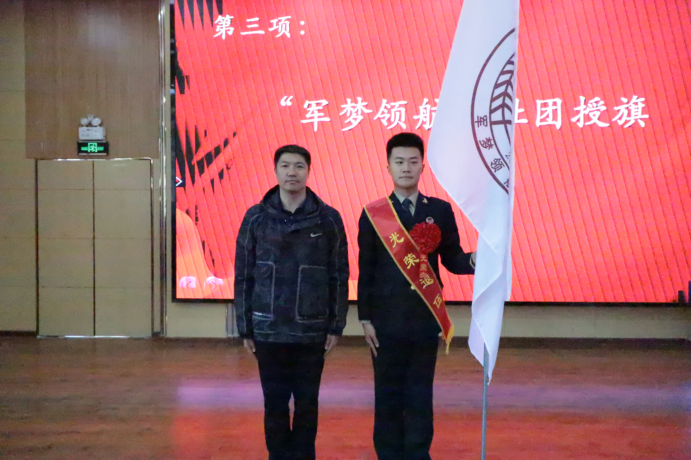 党委学工部部长 学生处处长王宇为“军梦领航”社团授旗
