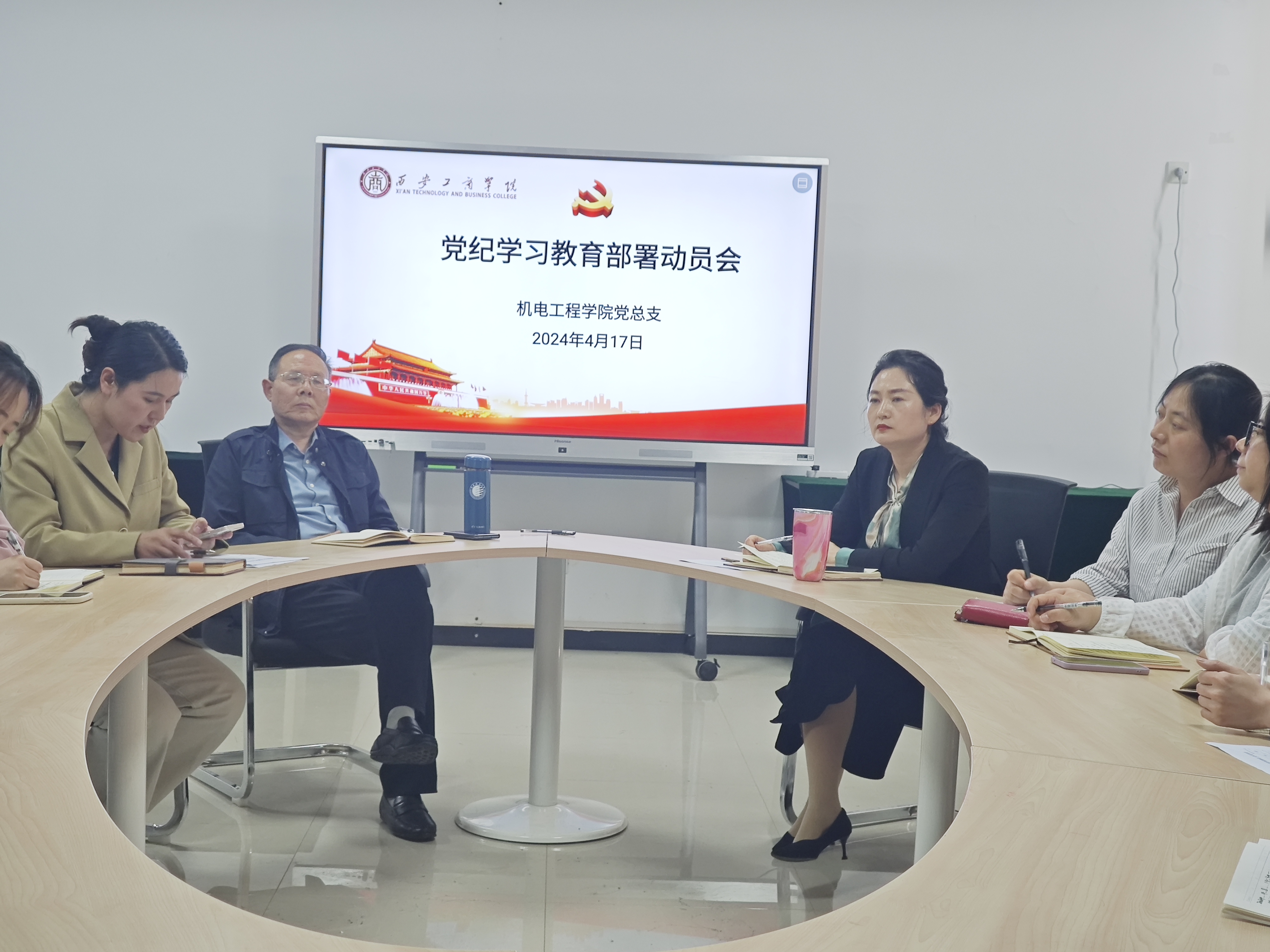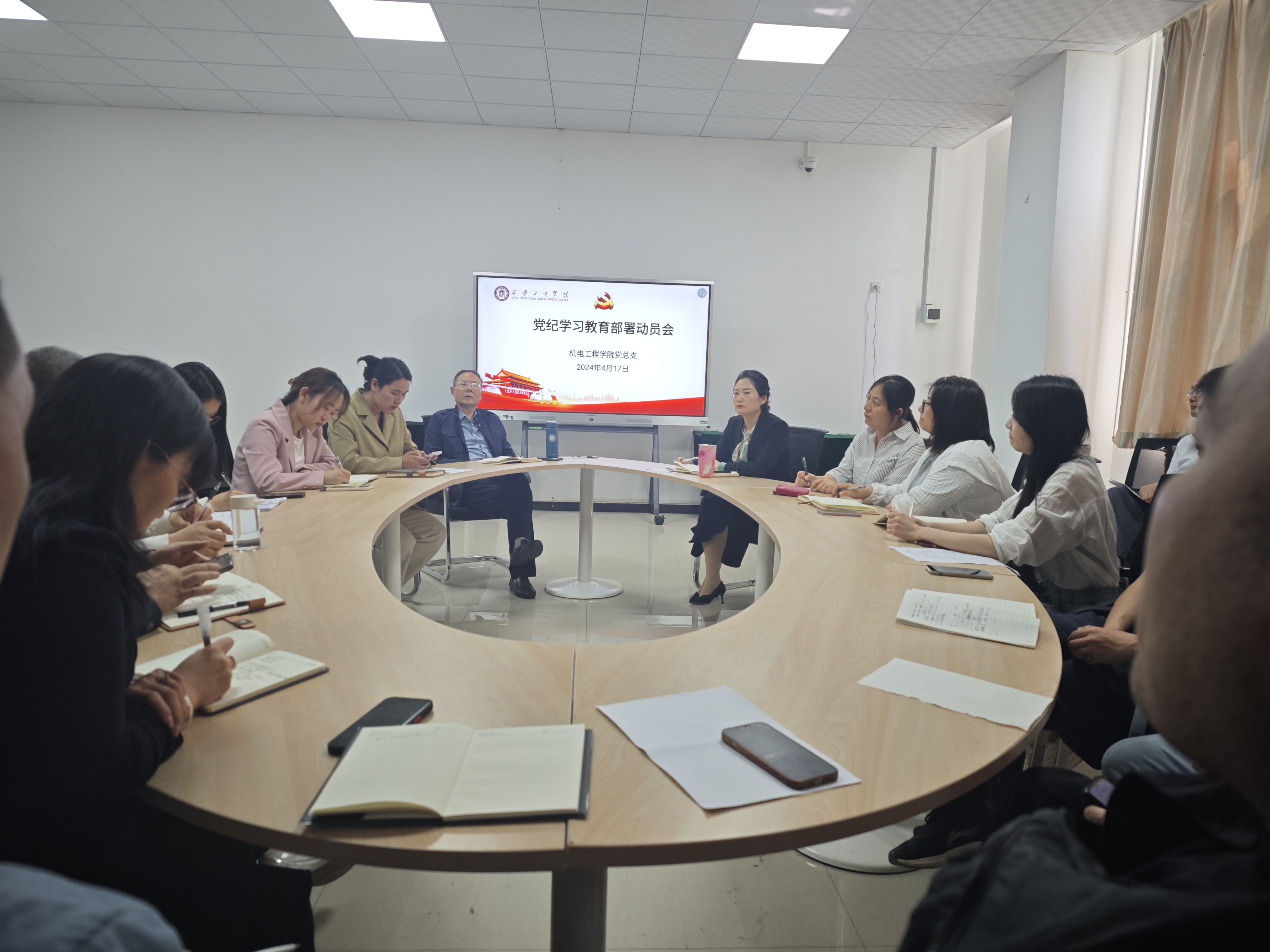 为深入学习贯彻习近平总书记关于党纪学习教育的重要讲话和重要指示精神,落实学校党委的工作部署要求,4月17日下午,机电工程学院党总支在实验楼301会议室召开党纪学习教育动员部署会,学院领导班子成员与全体教职工党员参加会议,党总支书记罗艳主持会议并对学院开展党纪学习教育进行了安排部署。