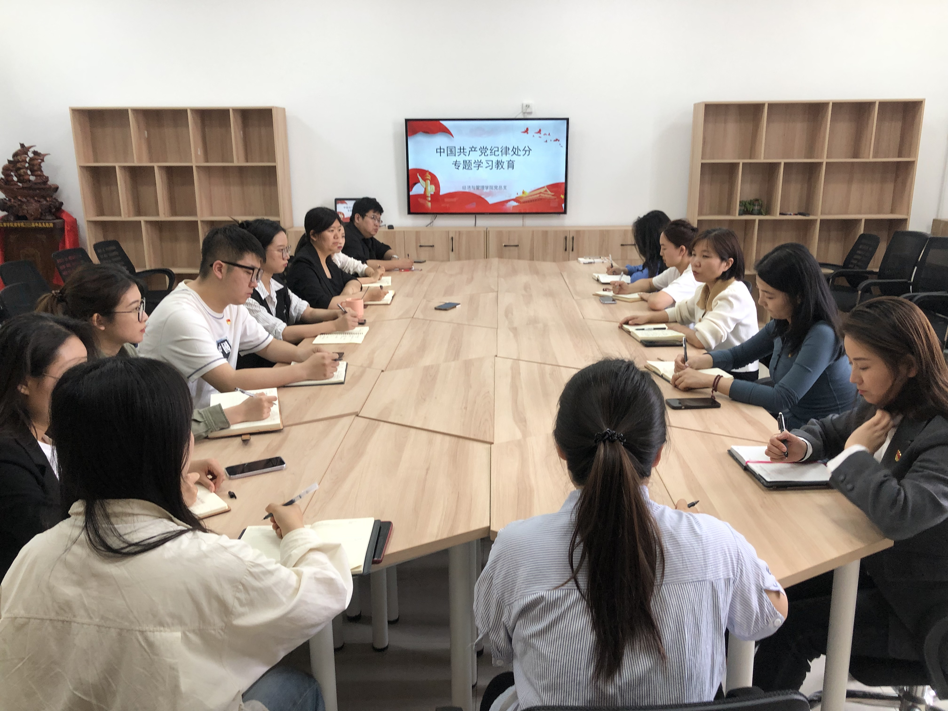 为深入学习贯彻习近平总书记关于党纪学习教育的重要讲话和重要指示精神,全面解读《中国共产党纪律处分条例》(以下简称《条例》),明确基层党组织党纪专题教育计划和目标。4月18日下午,经济与管理学院党总支开展党纪专题学习教育会,会议由经济与管理学院学院党总支书记李会萍主持,党总支委员及各党支部书记参加。