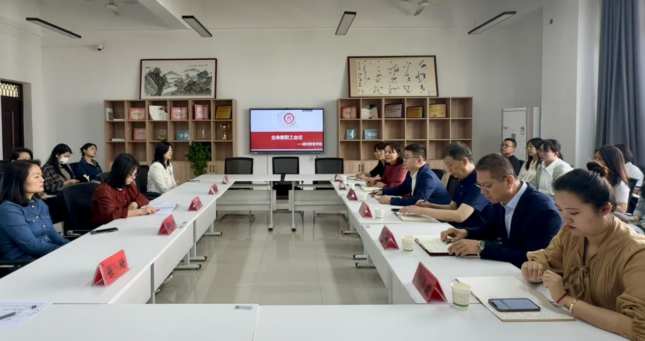 4月22日上午,西安工商学院通识教育学院(含国际教育学院)召开全体教职工大会,宣布学院干部任职决定。副董事长、常务副校长龙和平,校党委副书记、纪委书记杨红雨,人事处处长闫海霞,通识教育学院院长董宝绥,国际教育学院院长王嘉盈,新任教学副院长虞新学和学院在职教职工参加大会。会议由闫海霞处长主持。