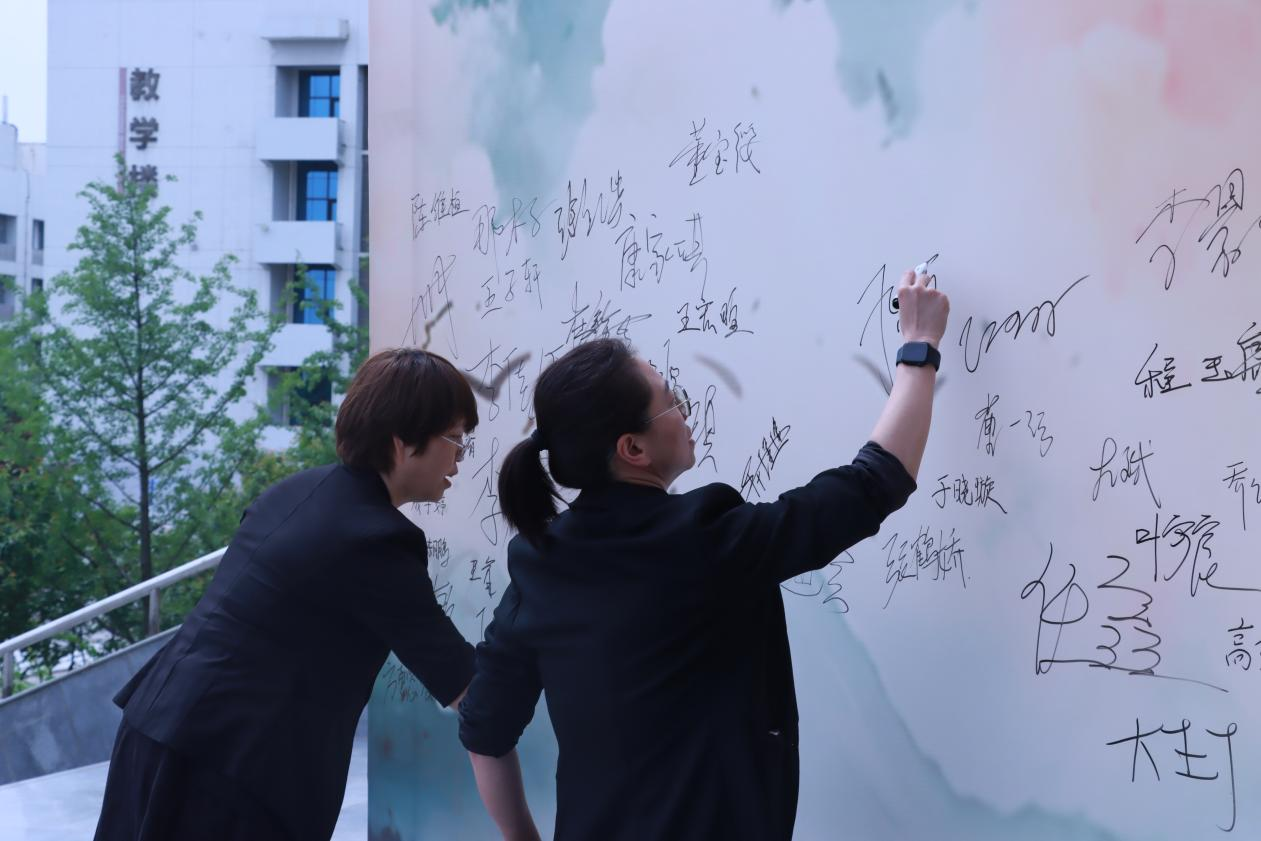 活动正式开始之前,在工作人员的带领下,同学们先在签名墙签名