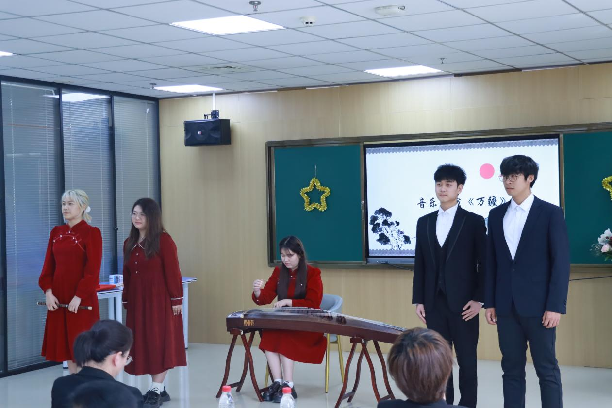 音乐表演《万疆》的竹笛和古筝呼应,男女生高音为我们展现了祖国大好河山。