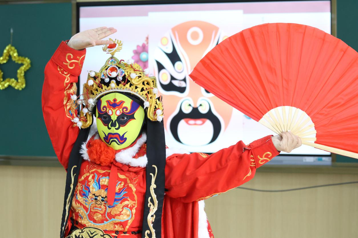 华夏汉字博大精深,脸谱之美丰富璀璨,京剧脸谱表演在彰显了祖国传统文化,也让同学们大为喝彩。