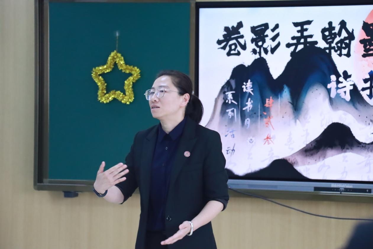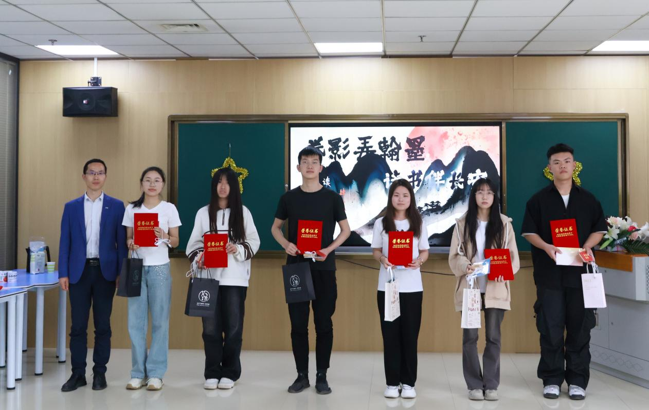 在活动尾声,由学校领导李景阳部长为灯笼书艺会优秀作品颁奖;党委副书记杨红雨为本次朗读会优秀朗读人颁奖,并一一合影留念;在活动的最后由副校长杨欣欣致辞讲话,希望同学们都能够养成终生读书的习惯,保持对美好的追求和对生活的热爱。