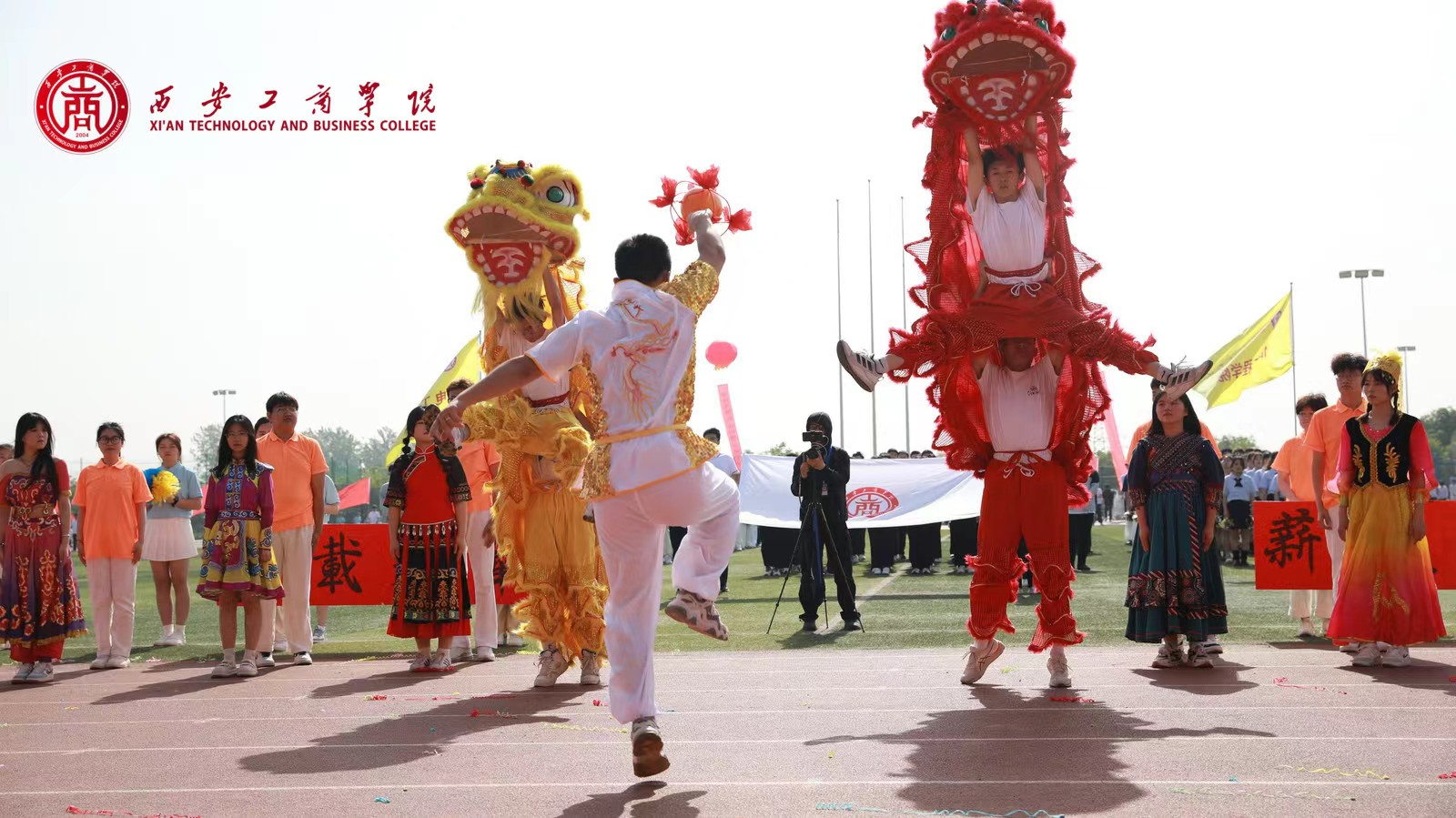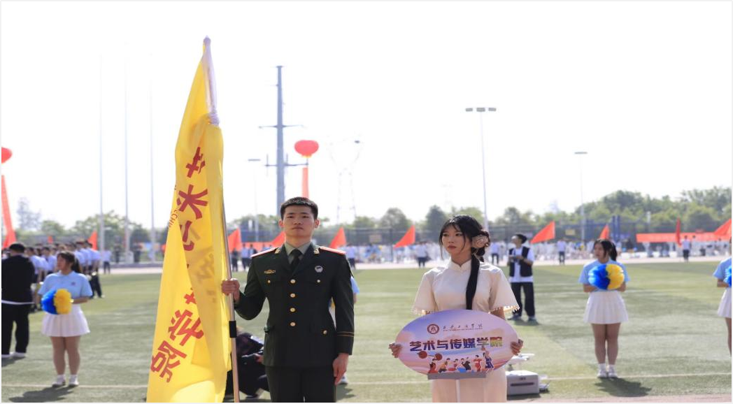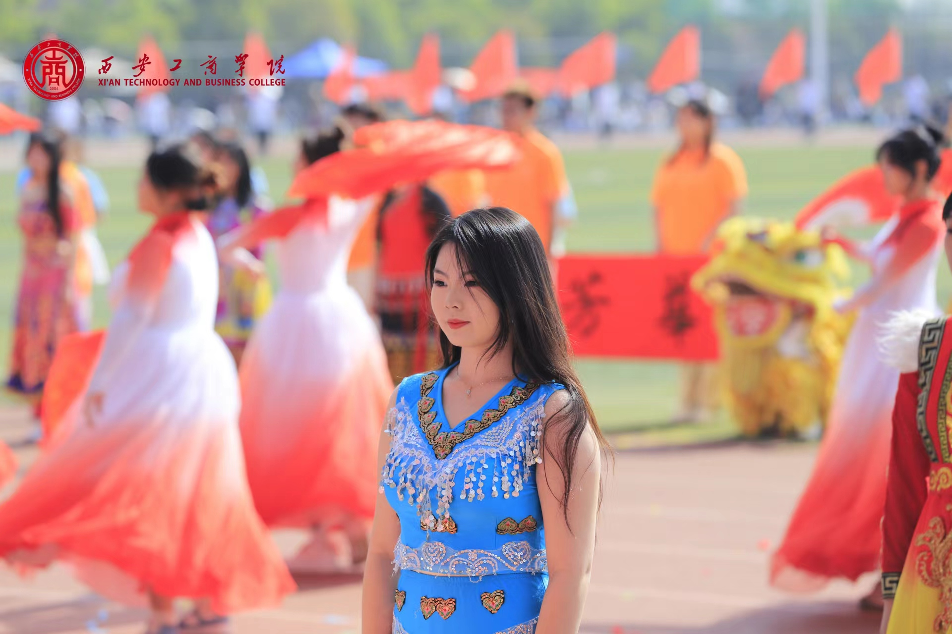 西安工商学院2024年春季田径运动会开幕式于4月25日上午隆重举行。国歌红旗,心之所向,爱国爱校,阔步向前。今年是建国75周年,也是学校建校20周年,在这澎湃人心的时刻,艺术与传媒学院莘莘学子用一幕幕精彩表演展现了新时代、新青年的精神风采。