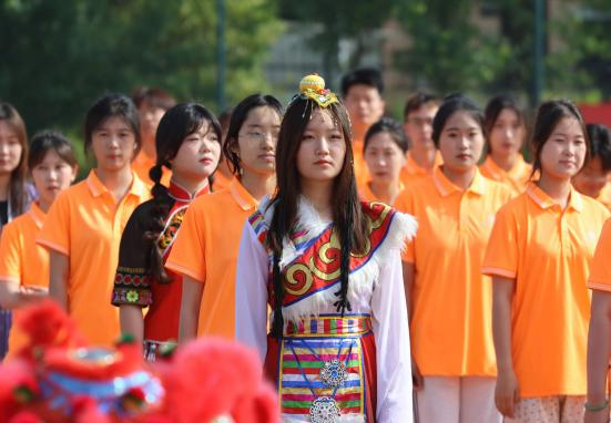 薪火相传七十五载,民族团结一家亲,同心共筑中国梦,而今看我新青年。一代又一代“心中有火,眼里有光”的中国人,共同汇聚起一个波澜壮阔、灯火灿然的新中国。艺术与传媒学院方阵变换成“同心圆”队形,寓意团结、包容、融合、共识,象征在中国共产党的领导下,五十六个民族像石榴籽一样紧紧抱在一起,同心同向聚共识、合力合拍谋发展,为实现中华民族伟大复兴的中国梦而奋斗。